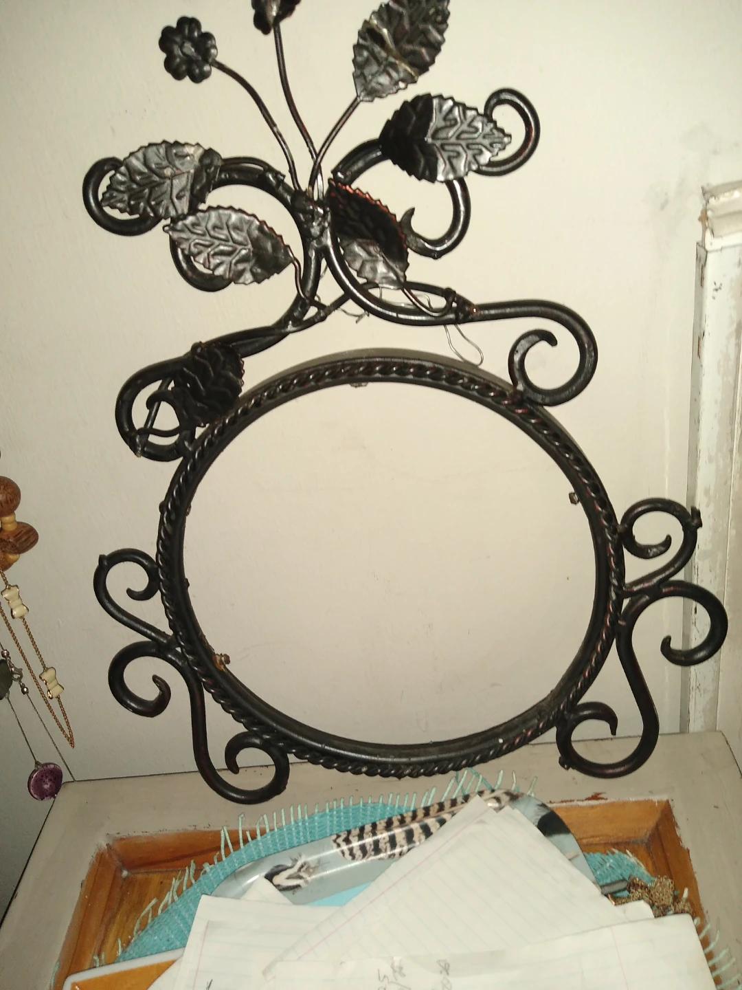 This is a one-of-a-kind handmade wrought iron decorative round frame it's just gorgeous you can put anything you want in there a needlepoint a picture just anything a message