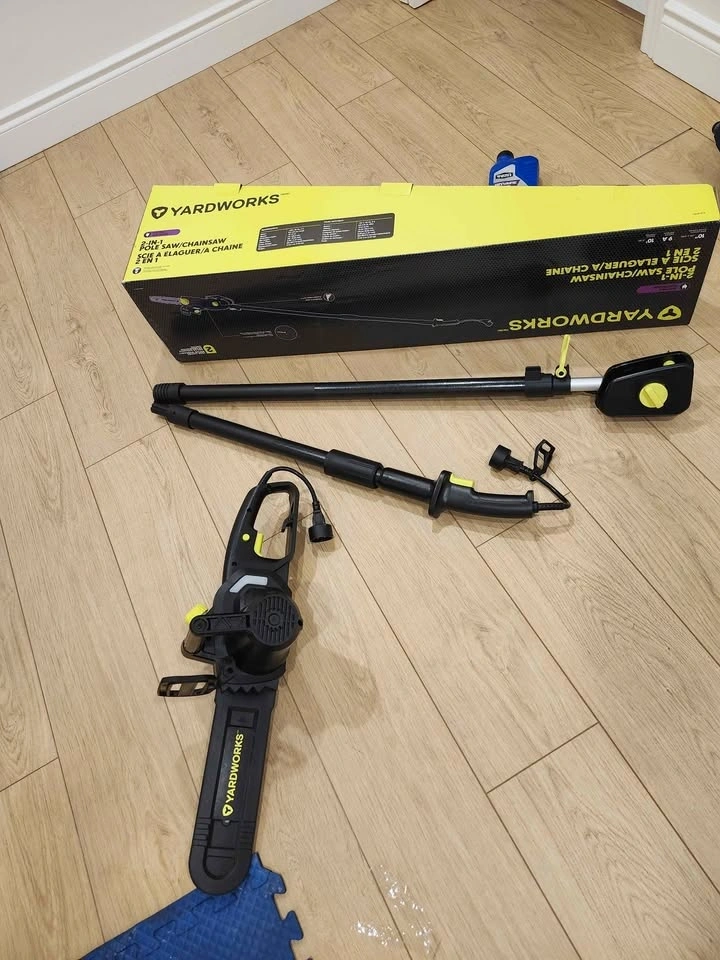 Yardworks 2 in 1 electric pole saw, 10 inch. Free chain saw oil.