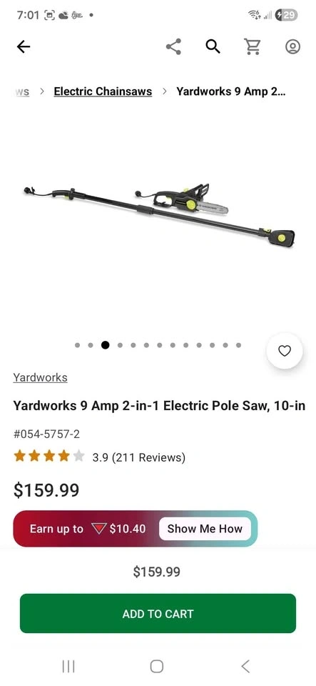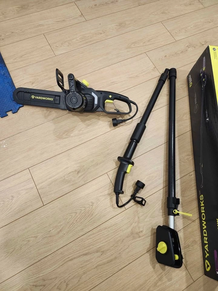 Yardworks 2 in 1 electric pole saw, 10 inch. Free chain saw oil.