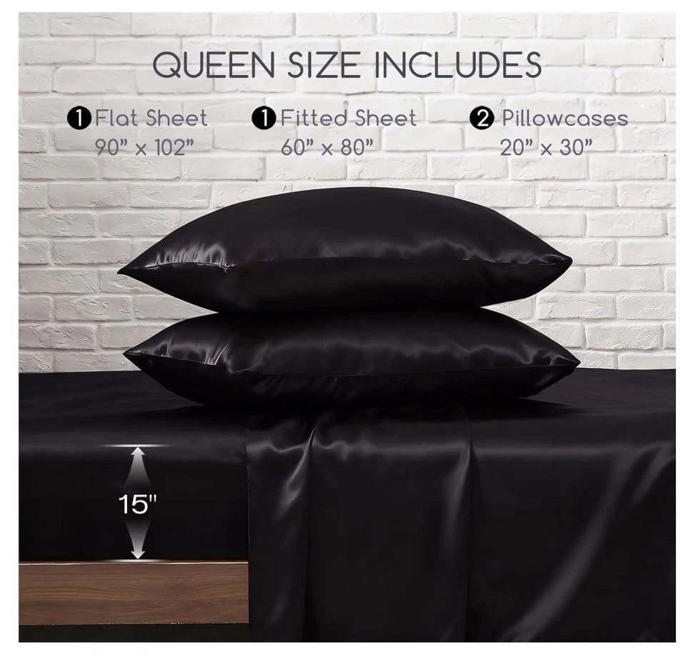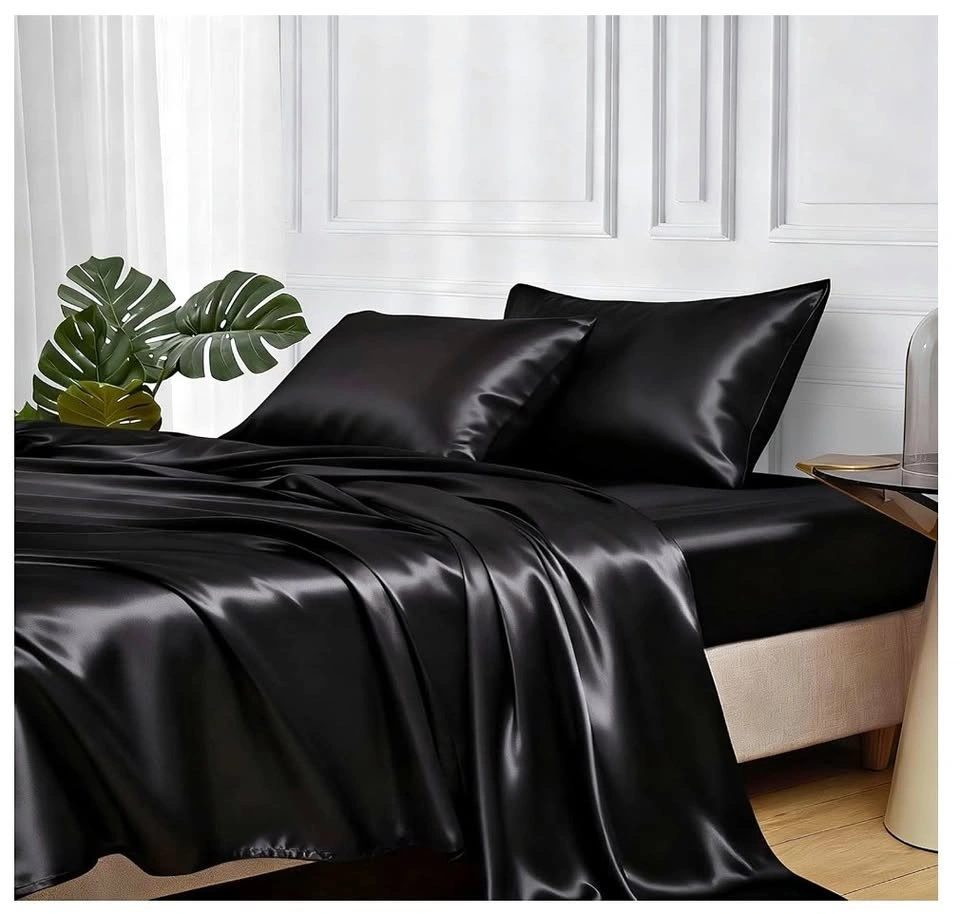 MR&HM Satin Bed Sheets, Queen Size, 4 Pcs