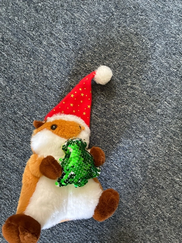 Add a touch of festive charm to your home with this adorable plush, complete with a Santa hat and a sequined Christmas tree! This decoration is new and ready to spread holiday cheer. It measures approximately 9 inches tall. Perfect for adding a whimsical touch to any room. This little is just waiting to bring some holiday magic to your home! If the ad is up, it's still available! Got as gift don’t need it. New never washed never played with.