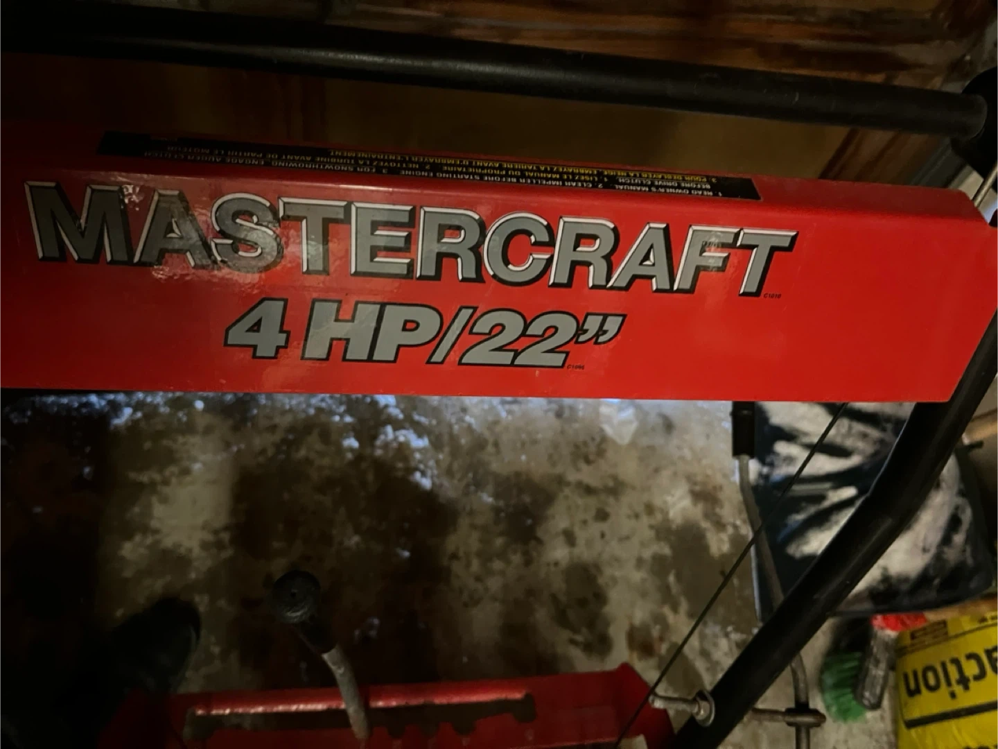 This is a Mastercraft Snow King snowblower. It's a 4 HP model with a 22-inch clearing width.
