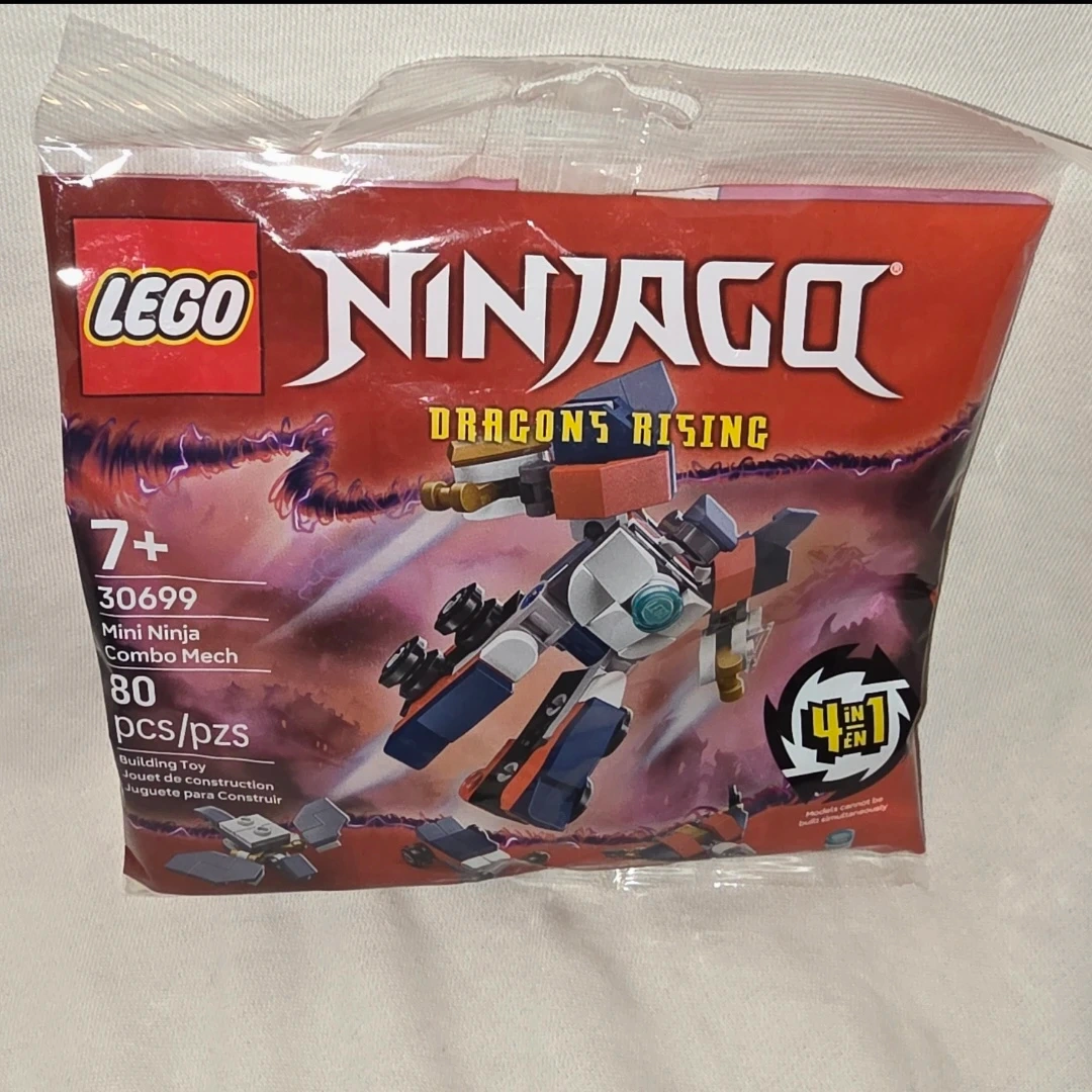 A LEGO Ninjago "Dragons Rising" Mini Ninja Combo Mech building set. It includes 80 pieces. This set is for ages 7+.