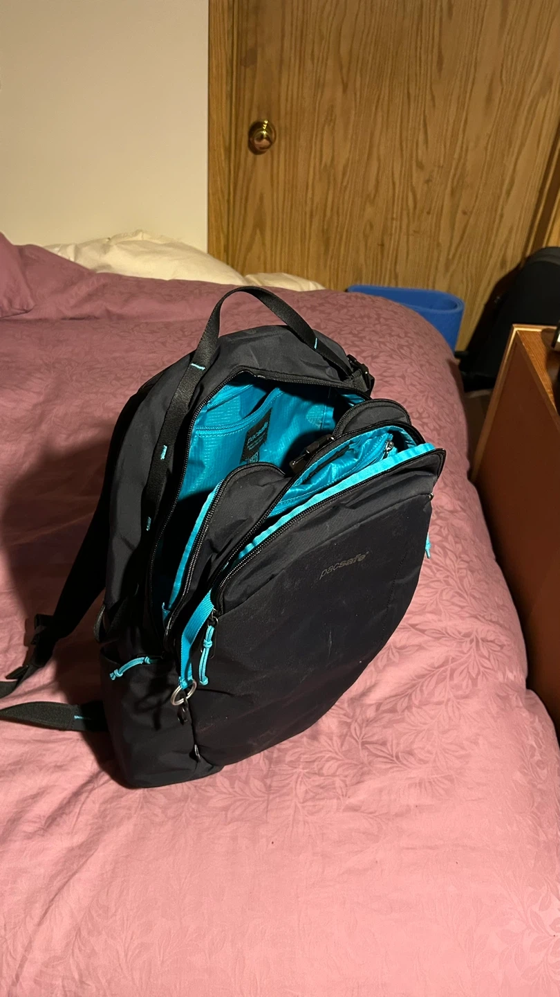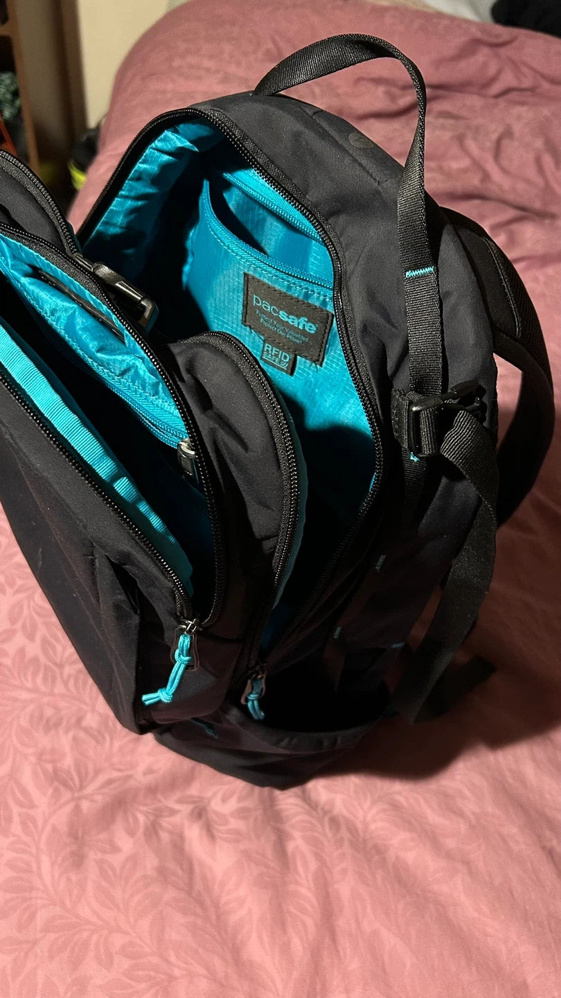 Pacsafe ECO 25L anti-theft backpack in black. Very lightly used (got last month, it is a bit too tall / thin for me) and I somehow misplaced one of the waist straps, hence the lower price.