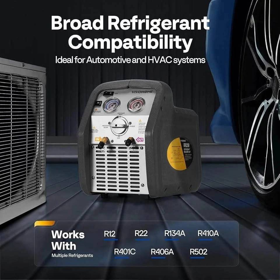 PORTABLE AND COMPACT: Compact design makes this ac recovery unit easy to transport while the design has its own eye-catching appearance; Durable and reliable, the VIVOHOME refrigerant recovery machine will quickly become your favorite choice