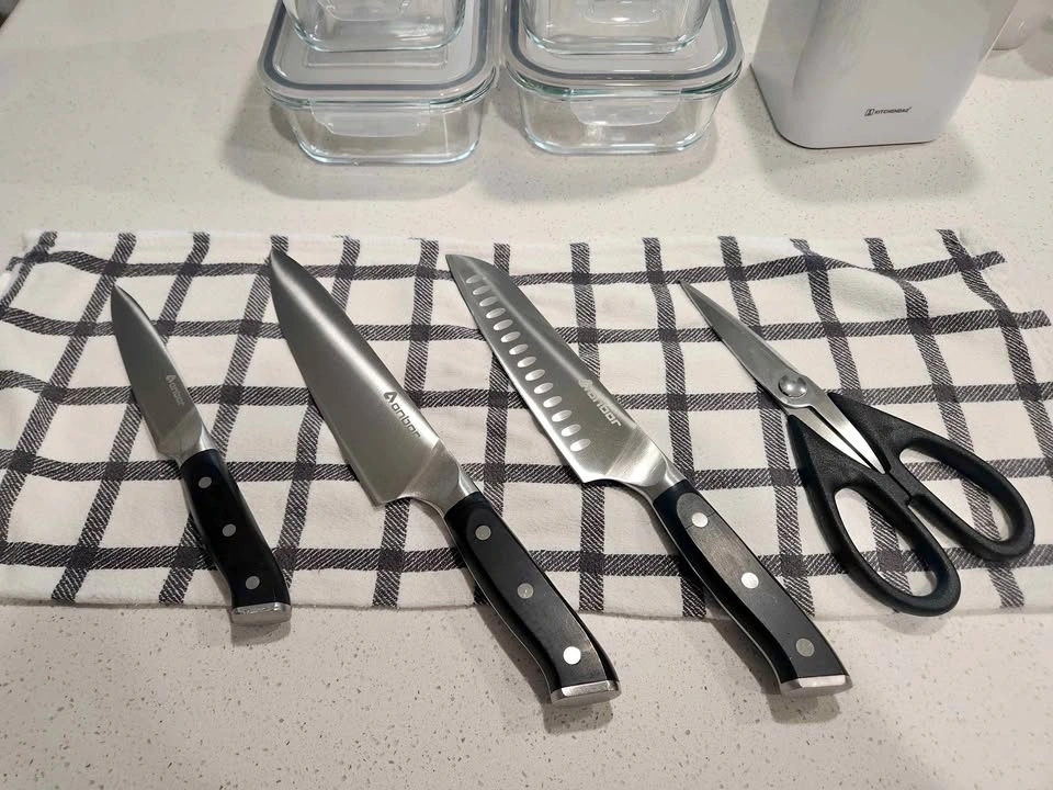 Chef Knife Set Professional Kitchen Knife Set 3-Piece with Japanese Knife, 8" Chef's Knife & 7" Santoku Knife & 5" Utility Knife. High Carbon Stainless Steel. Purchased 1-2 years ago from Amazon & offline. Great condition. From a smoke-free/pet-free home. Pickup in Sage Hill NW. Flexible meeting times with notice.