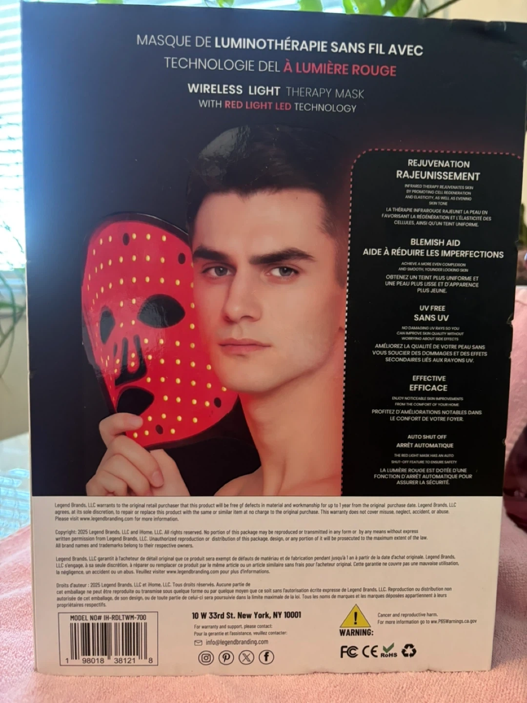 This iHome wireless light therapy mask uses red light LED technology.