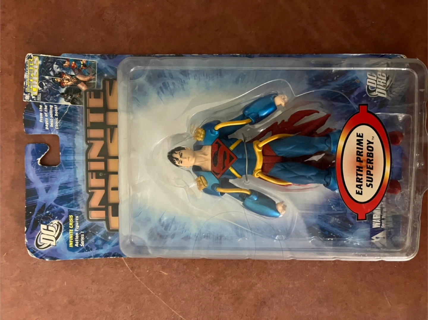 This is a DC Direct action figure from the Infinite Crisis series, featuring Earth Prime Superboy. It's part of a best-selling series of action figures based on DC Comics. This collectible comes in its original packaging.