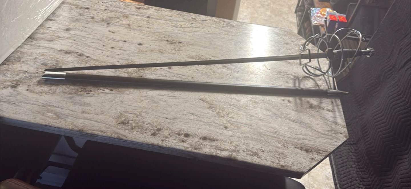 This decorative rapier features a steel blade and a complex hilt. It comes with a matching scabbard for protection. A beautiful piece for display!