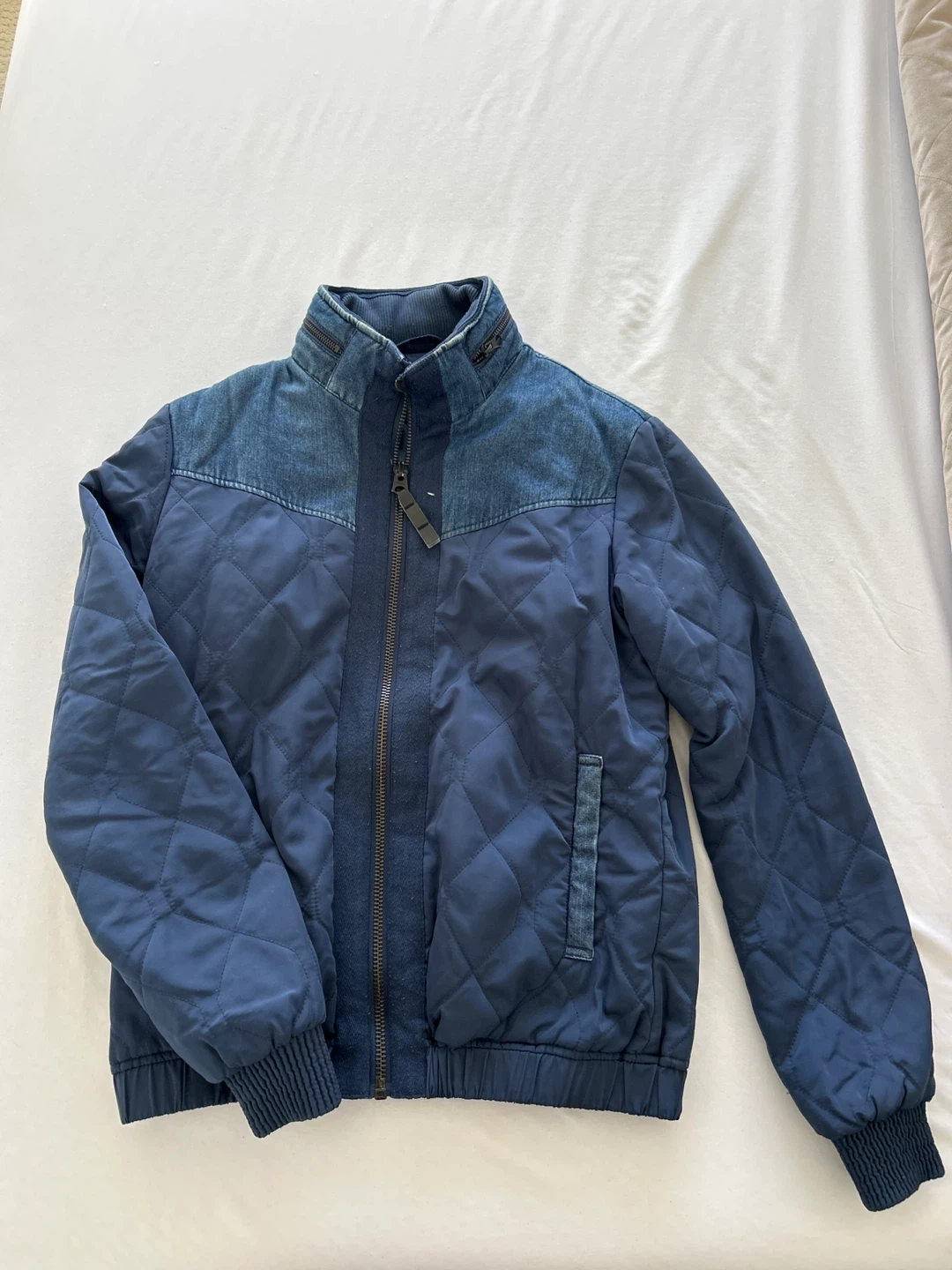 Blue Quilted Bomber Jacket - S