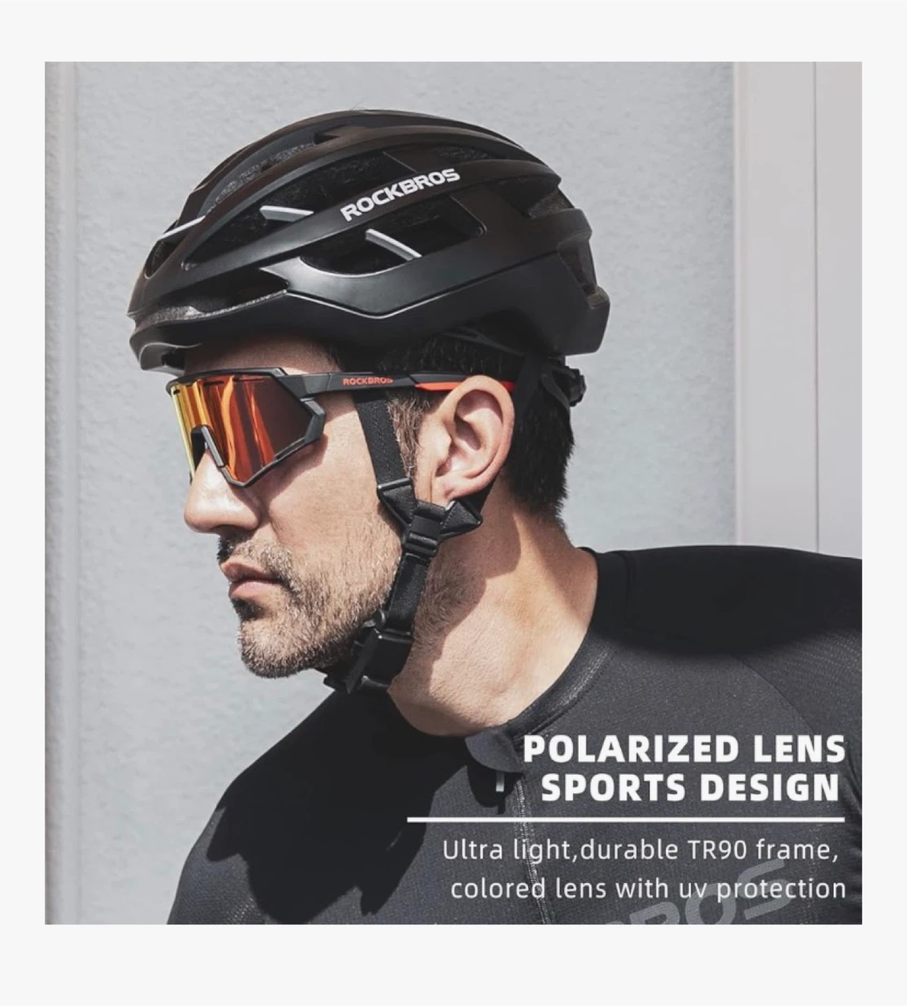 These ROCKBROS cycling glasses come with TAC polarized lens that effectively reduce glare and blocks harmful UVA & UVB rays. They're dust-proof, rain-proof, and dirt-proof, keeping your vision clear. The frame is ultra-light and durable TR90 material.