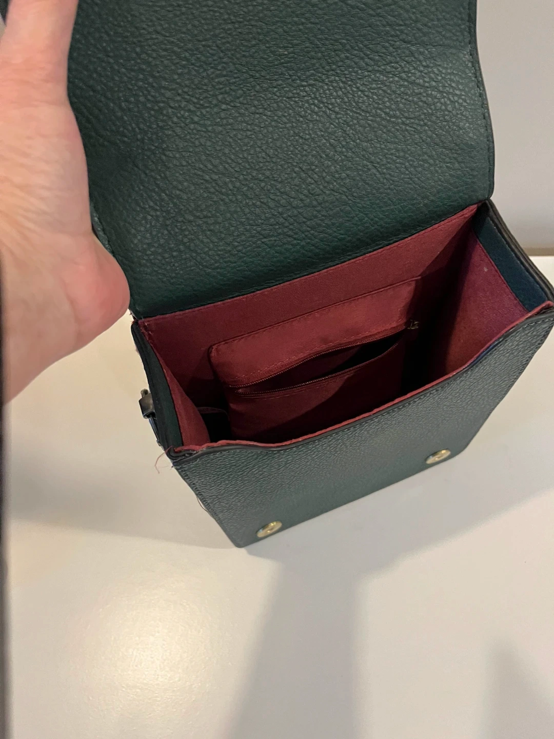 Dark Green Faux Leather Steampunk Handbag with Clock Design