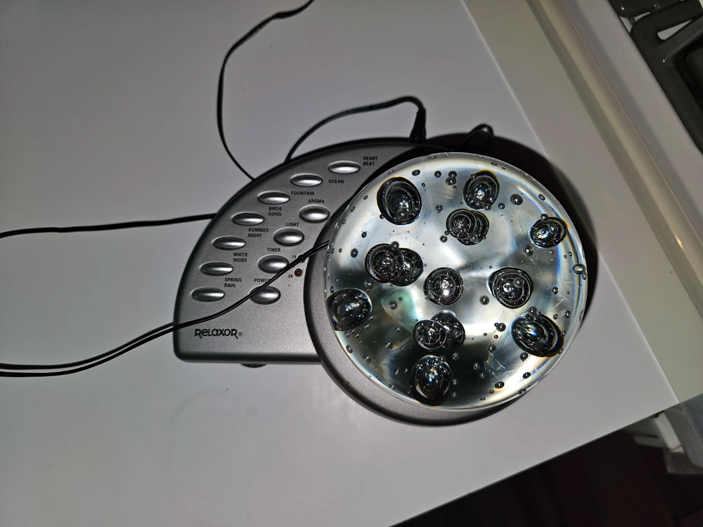This is a Relaxor sound soother. It has different sounds like ocean, rain, and white noise to help you relax. It also has a light feature. Great for creating a calming atmosphere!