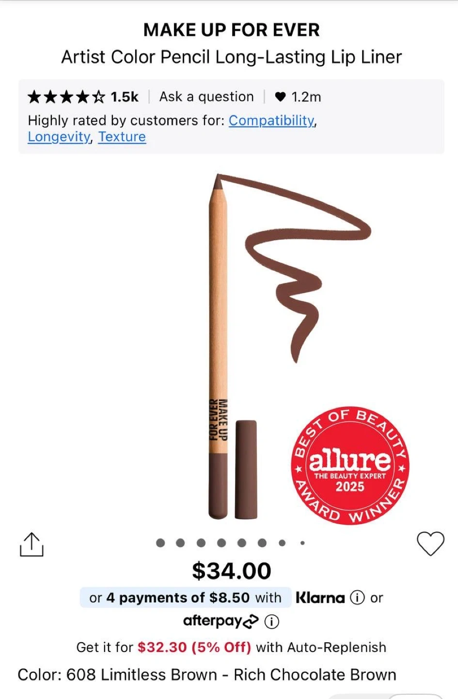 Selling a brand new, never used Make Up For Ever Artist Color Pencil in shade 608 Limitless Brown (rich chocolate brown).