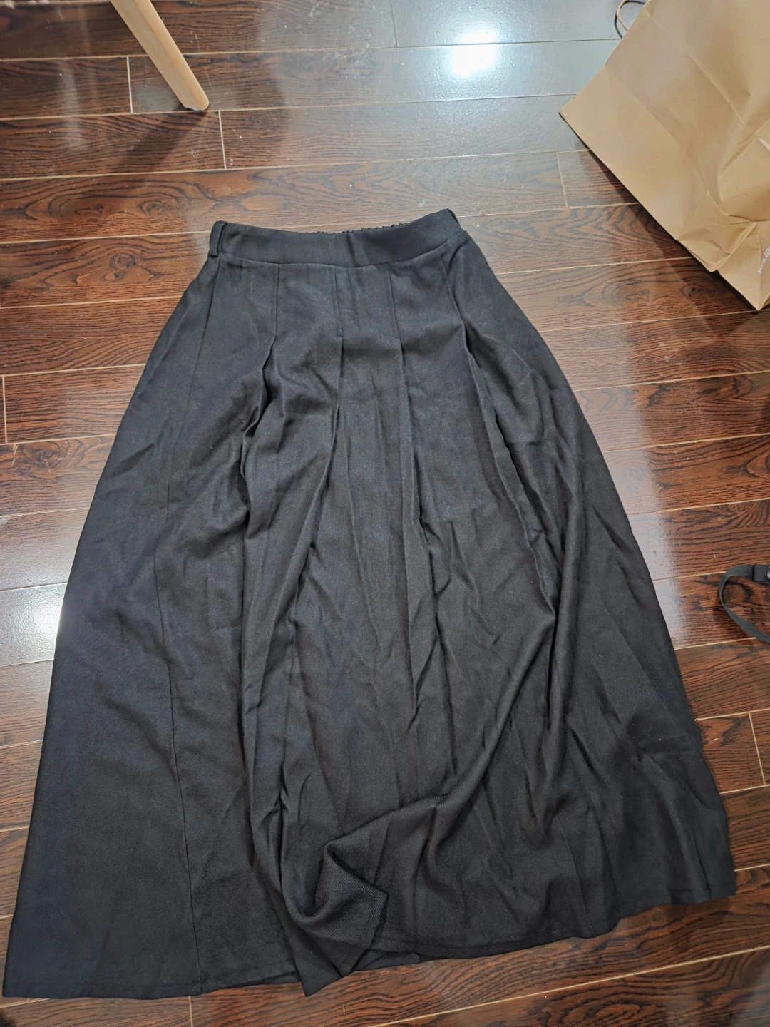 Sweetra black pleated maxi skirt with a matching belt. It's made from woven fabric. Elastic waistband for a comfy fit. This skirt is suitable for casual wear.