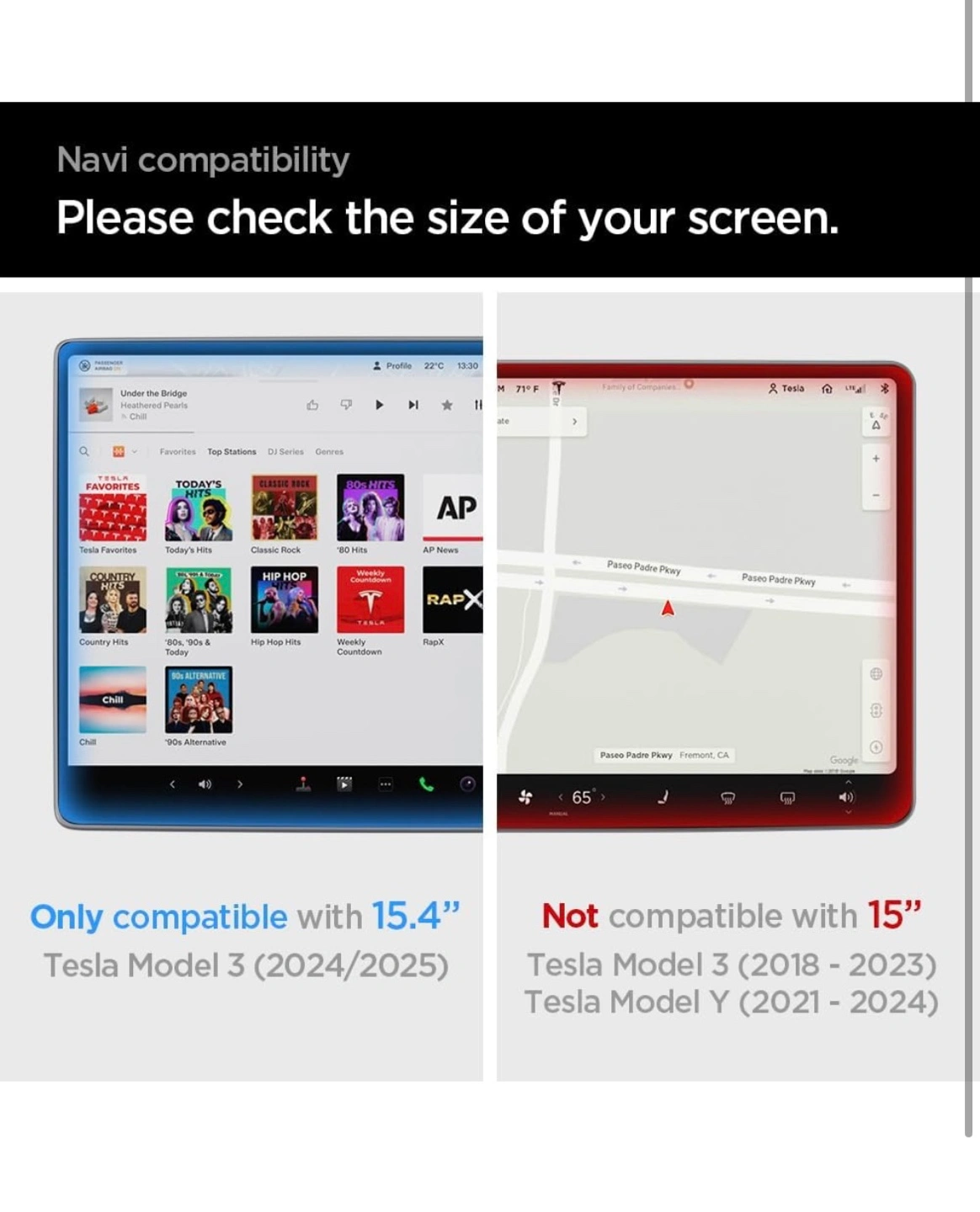 Anti-glare screen protector, 9H tempered glass, easy installation with tray. Compatible with Tesla Model 3 2024/2025 only.