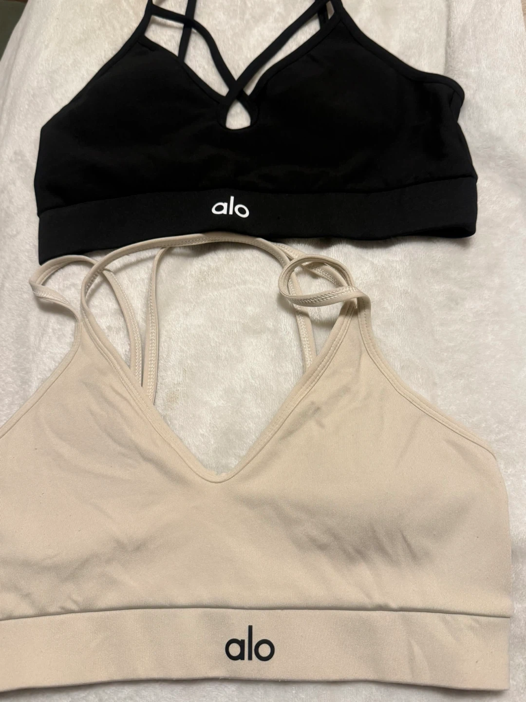 Selling two brand new Alo Yoga bras! One is black with a unique criss cross design, and the other is a classic beige colour. Both are in great condition and ready for a new home! Size M/L asking $25 each