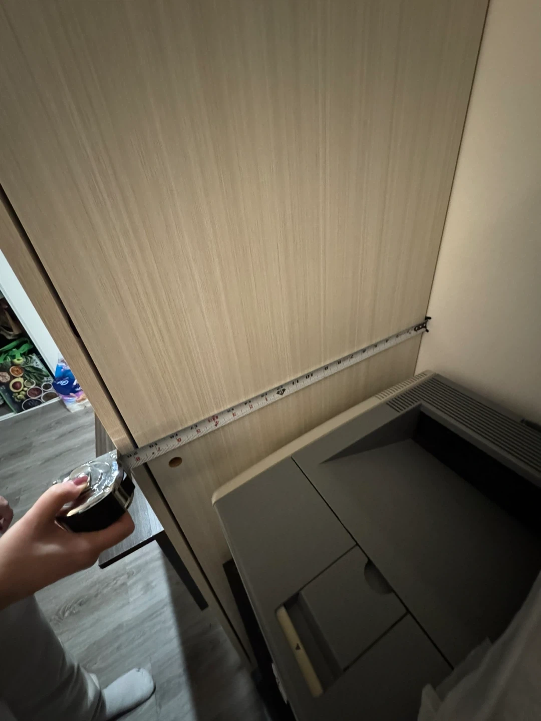 This murphy bed folds up to reveal a desk surface and has built-in LED lighting. It's a great space-saving solution for small rooms. The main cabinet is approximately 81 inches tall and 58.5 inches wide.