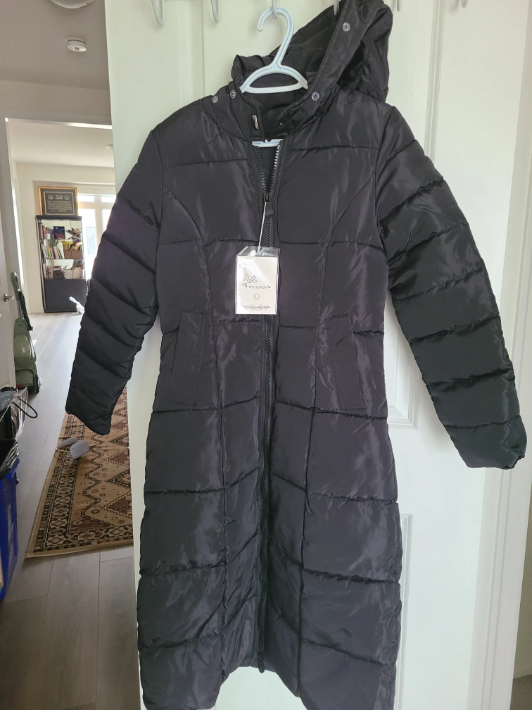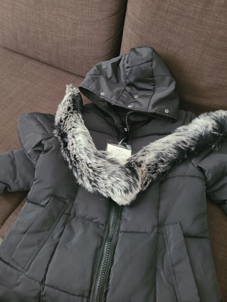 Ladies. Size L, but fits M or S, also adequate for youth 12 and over. Detachable fur lining on hood.