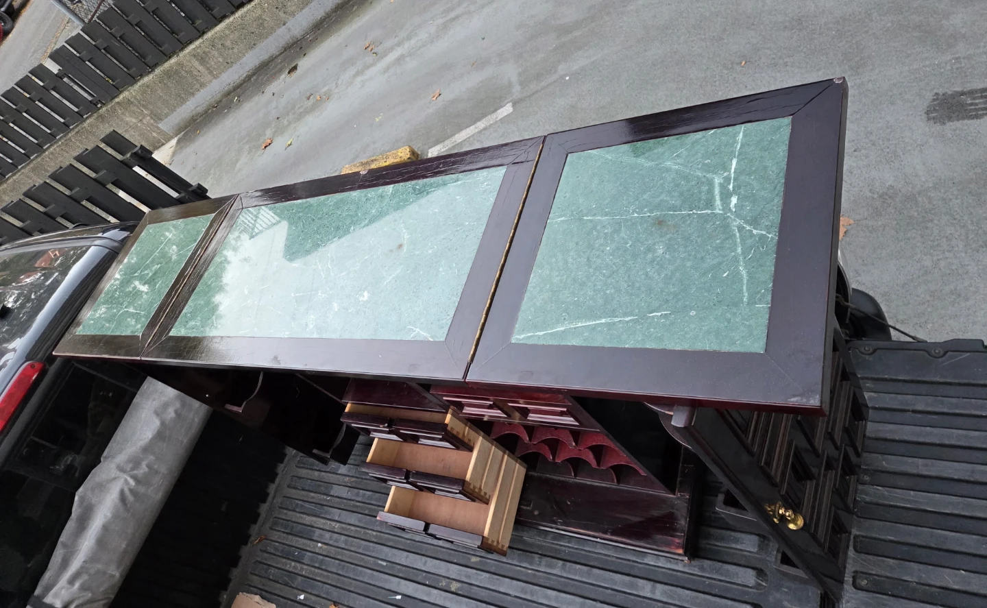Solid Wood Folding Bar Cabinet With Green Marble Top (Delivery Available)