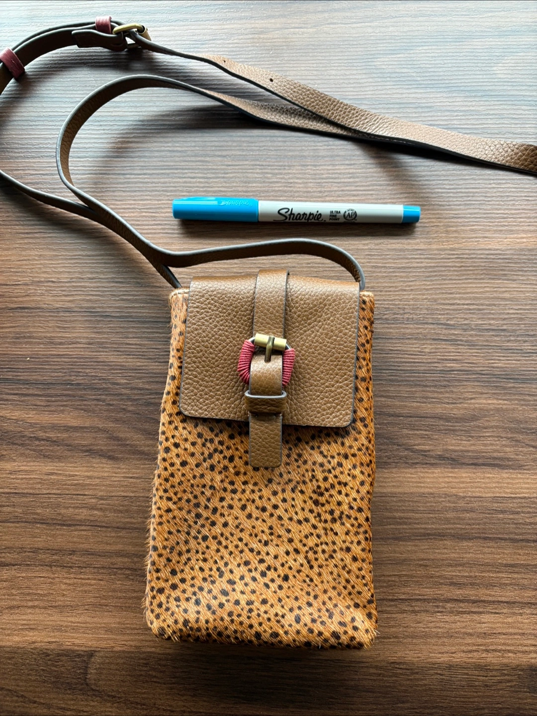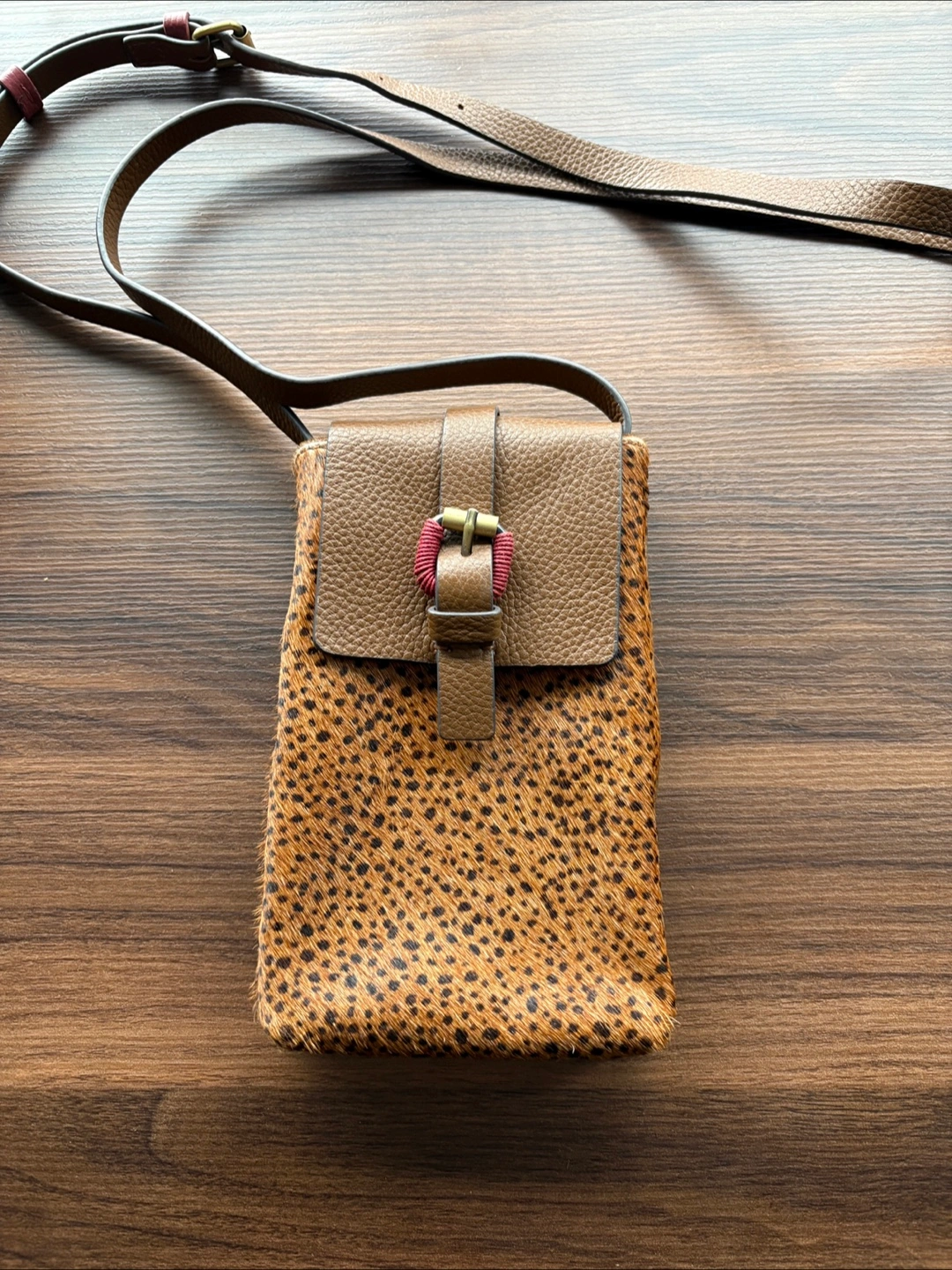Cute White Stuff crossbody phone bag in excellent condition! It features a unique animal print leather and a secure buckle closure. Perfect for keeping your phone and essentials close at hand while you're out and about. Original price 109cad
