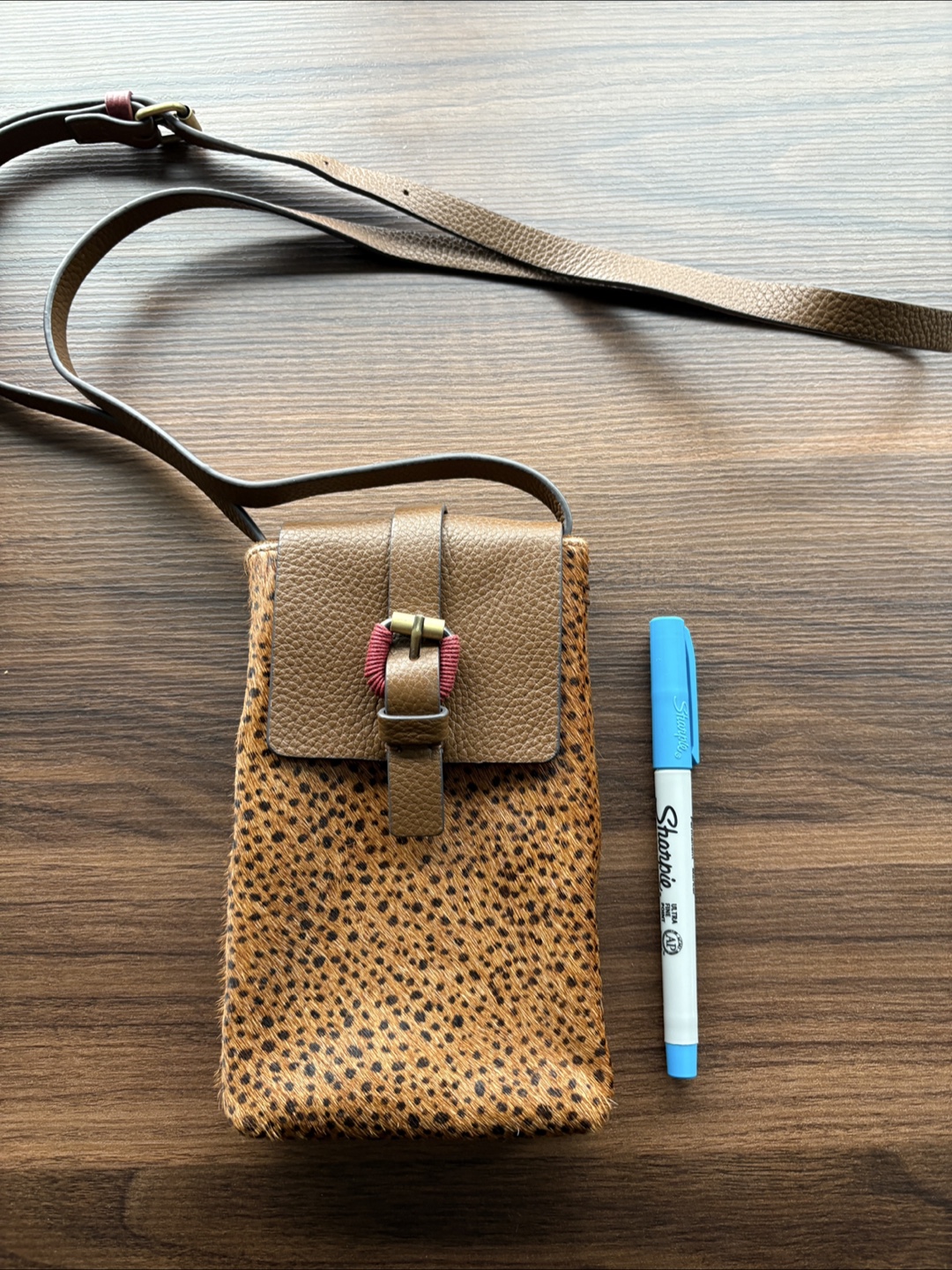 Cute White Stuff crossbody phone bag in excellent condition! It features a unique animal print leather and a secure buckle closure. Perfect for keeping your phone and essentials close at hand while you're out and about. Original price 109cad