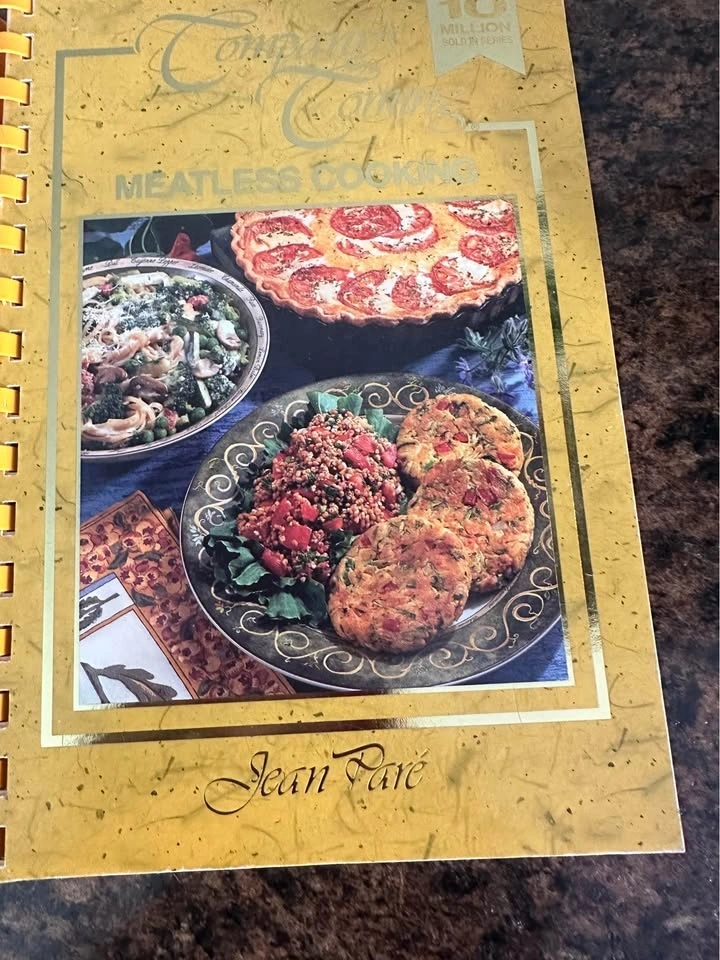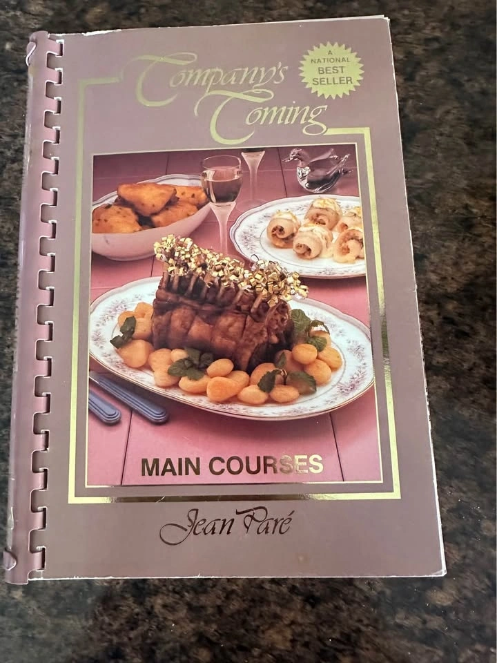 Company's Coming series by Jean Paré. Includes 'Meatless Cooking' (1997, yellow cover) with vegetarian recipes, and 'Main Courses' (c. 1994, pink cover) with various protein dishes and sides. Great collector's items or for everyday cooking. Both are in excellent condition for their age, with no tears, stains, or missing pages. See photos for details. $8.00 for both. Pick up in Welland.