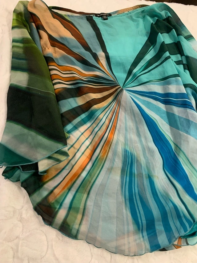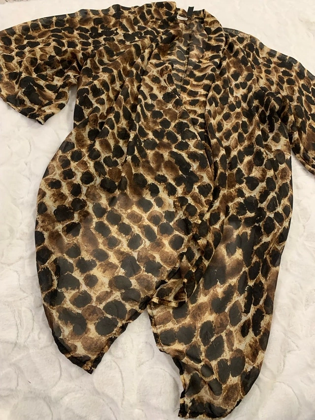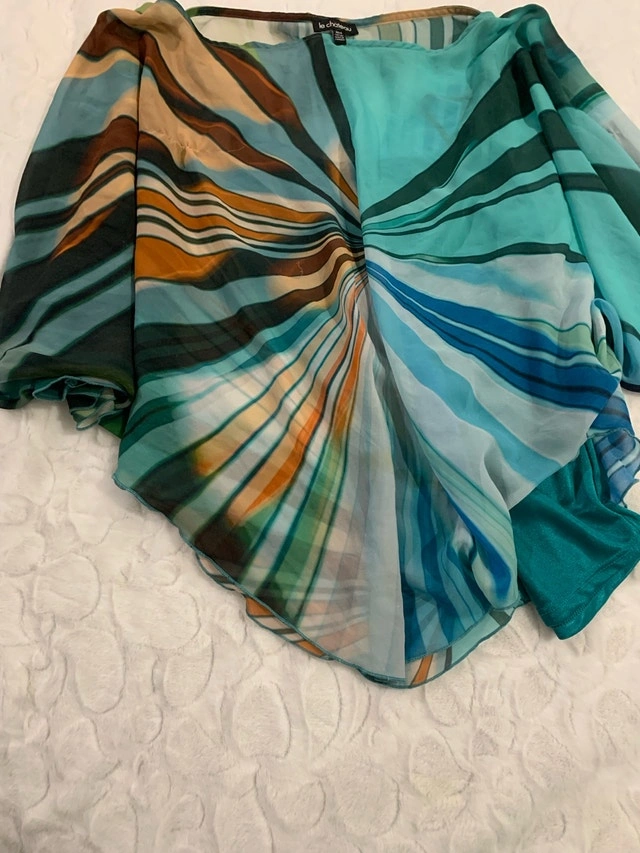 Add a splash of colour and style to your wardrobe with these lovely kimonos! These items are in used condition. The turquoise kimono is sure to turn heads with its unique design. The neutral coloured kimono is a perfect match for any event! Size: Medium (8-10). For Sale By: Owner.
