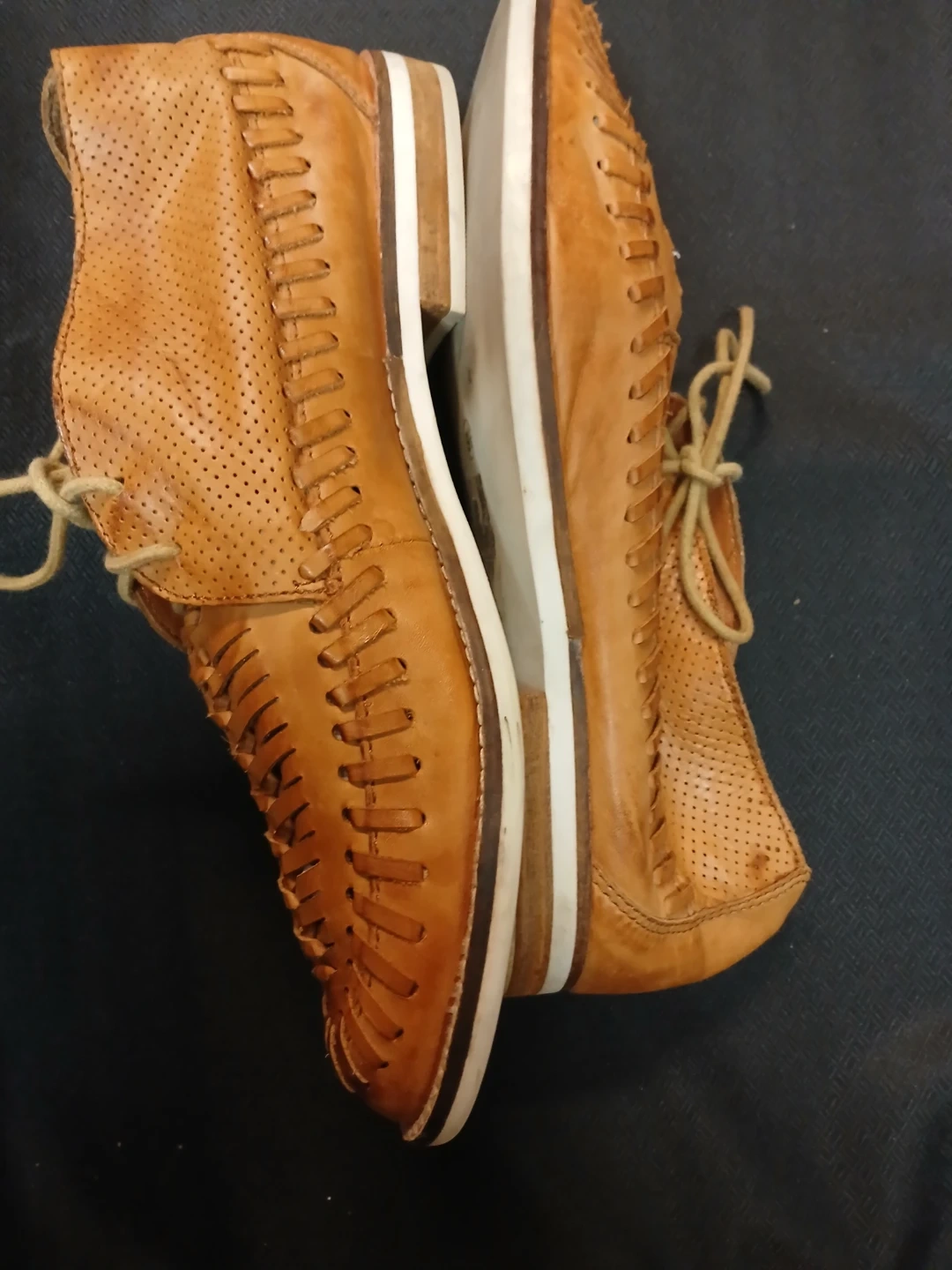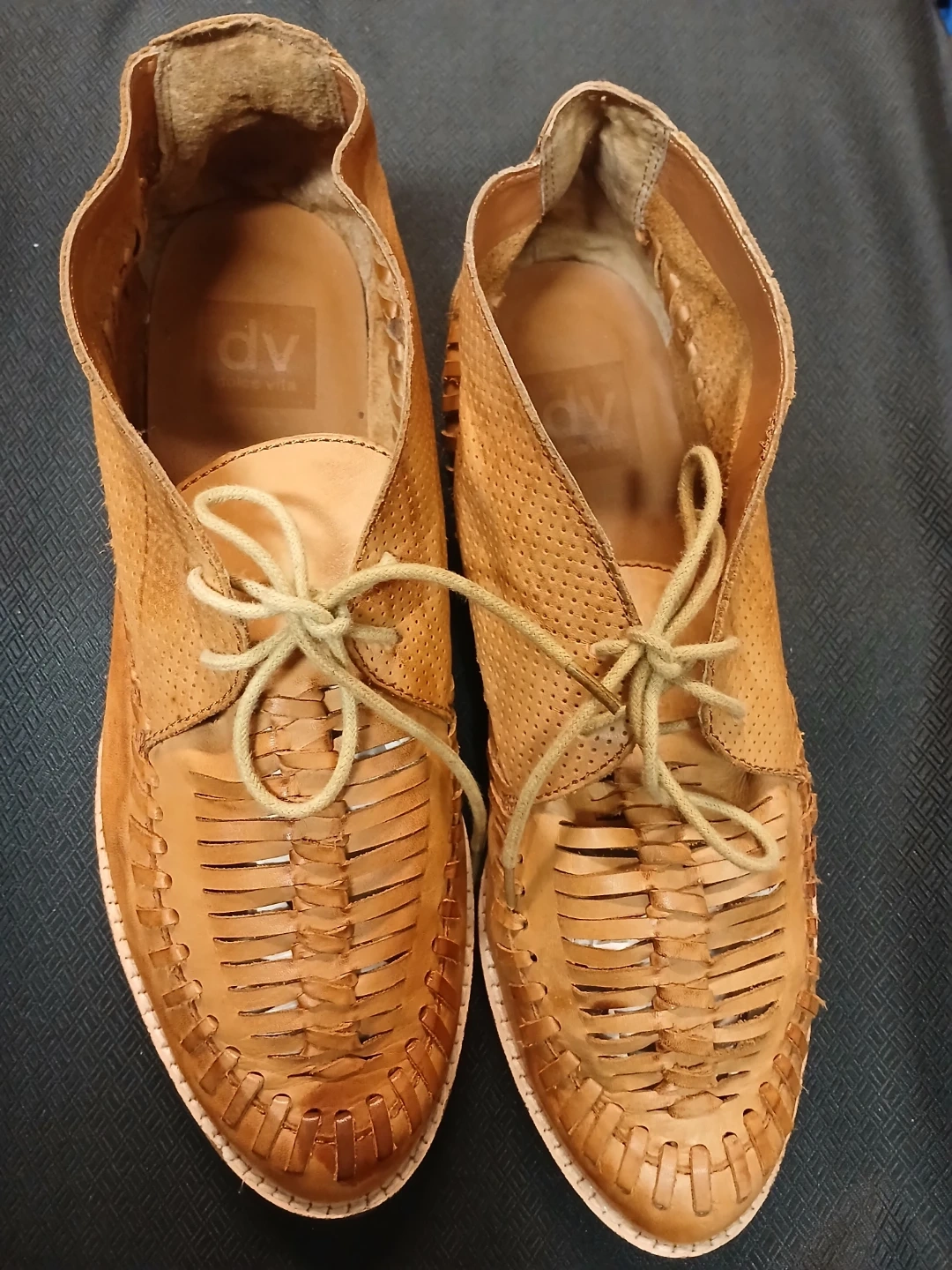 Dolce Vita shoes in a tan leather. They feature a unique woven design and are in great condition!