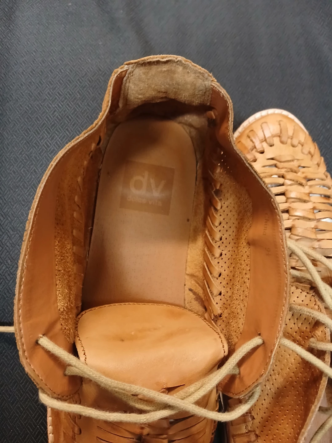 Dolce Vita shoes in a tan leather. They feature a unique woven design and are in great condition!