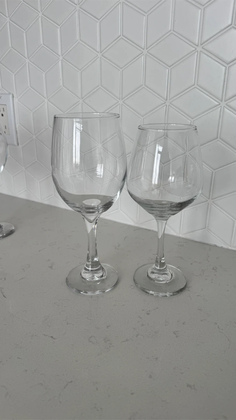 Selling a set of 6 wine glasses. They are in great condition and ready for a new home! Perfect for entertaining or just enjoying a glass of wine after a long day