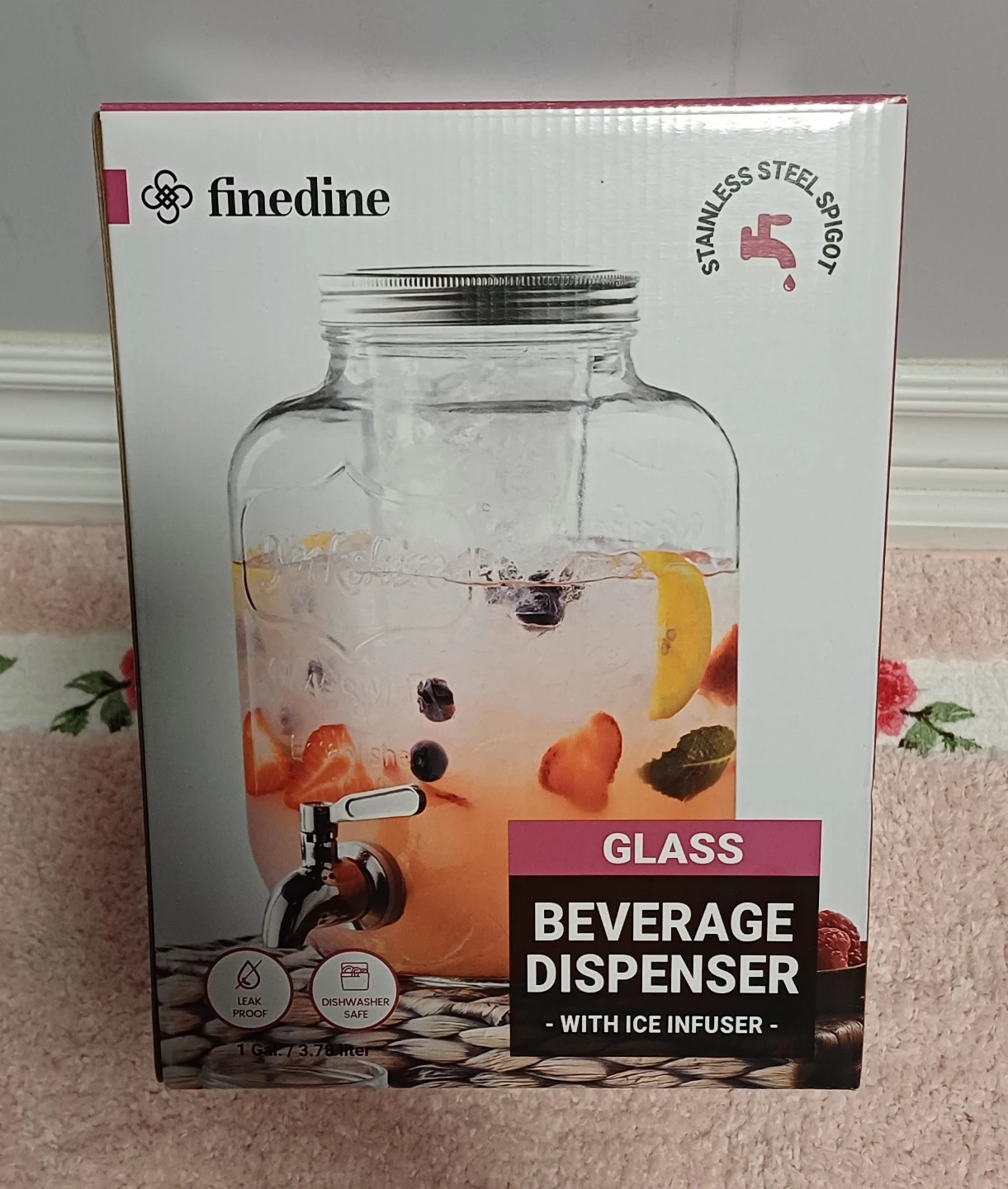 Finedine Glass Beverage Dispenser with Ice Infuser