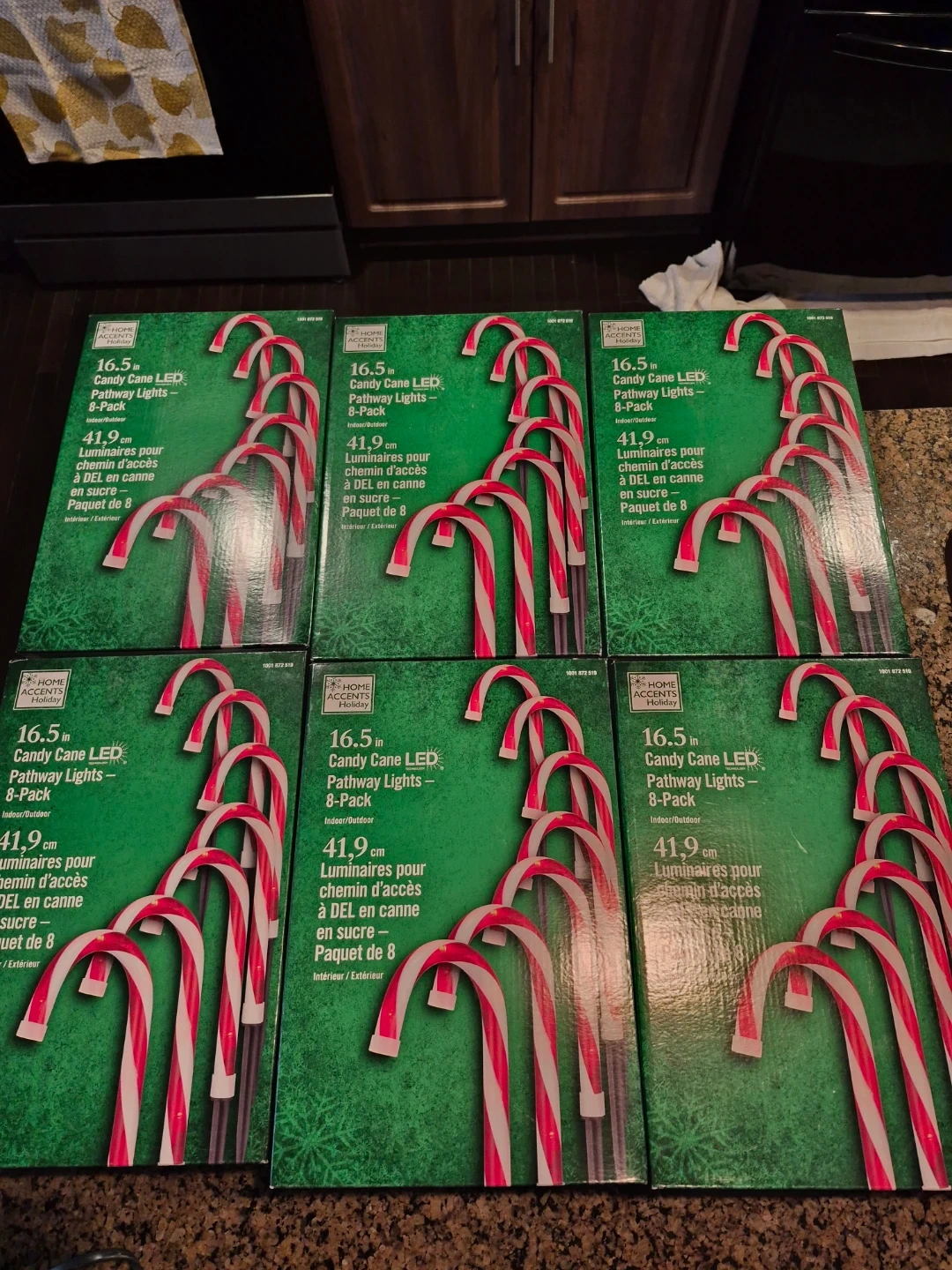Candy cane pathway lights, Set of 6 new, unopened 16.5-inch candy cane LED pathway lights. Each pack contains 8 lights for indoor or outdoor use. A festive addition to your holiday décor! I have 6 boxes available, NEW never used. Will sell for $7 each.