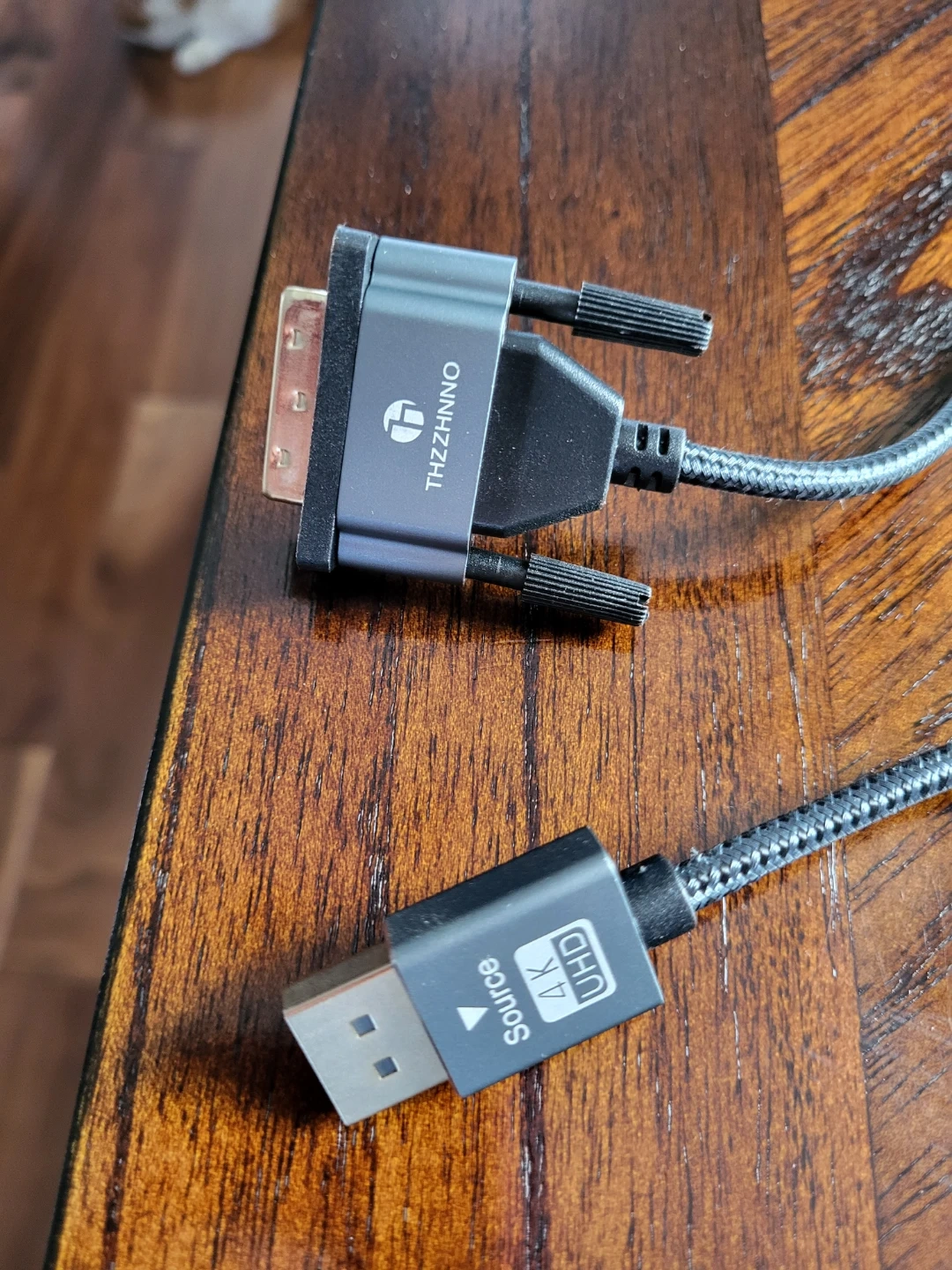 This THZZHNNO cable connects a USB source to a DVI display. It supports 4K UHD resolution. Braided cable for durability.