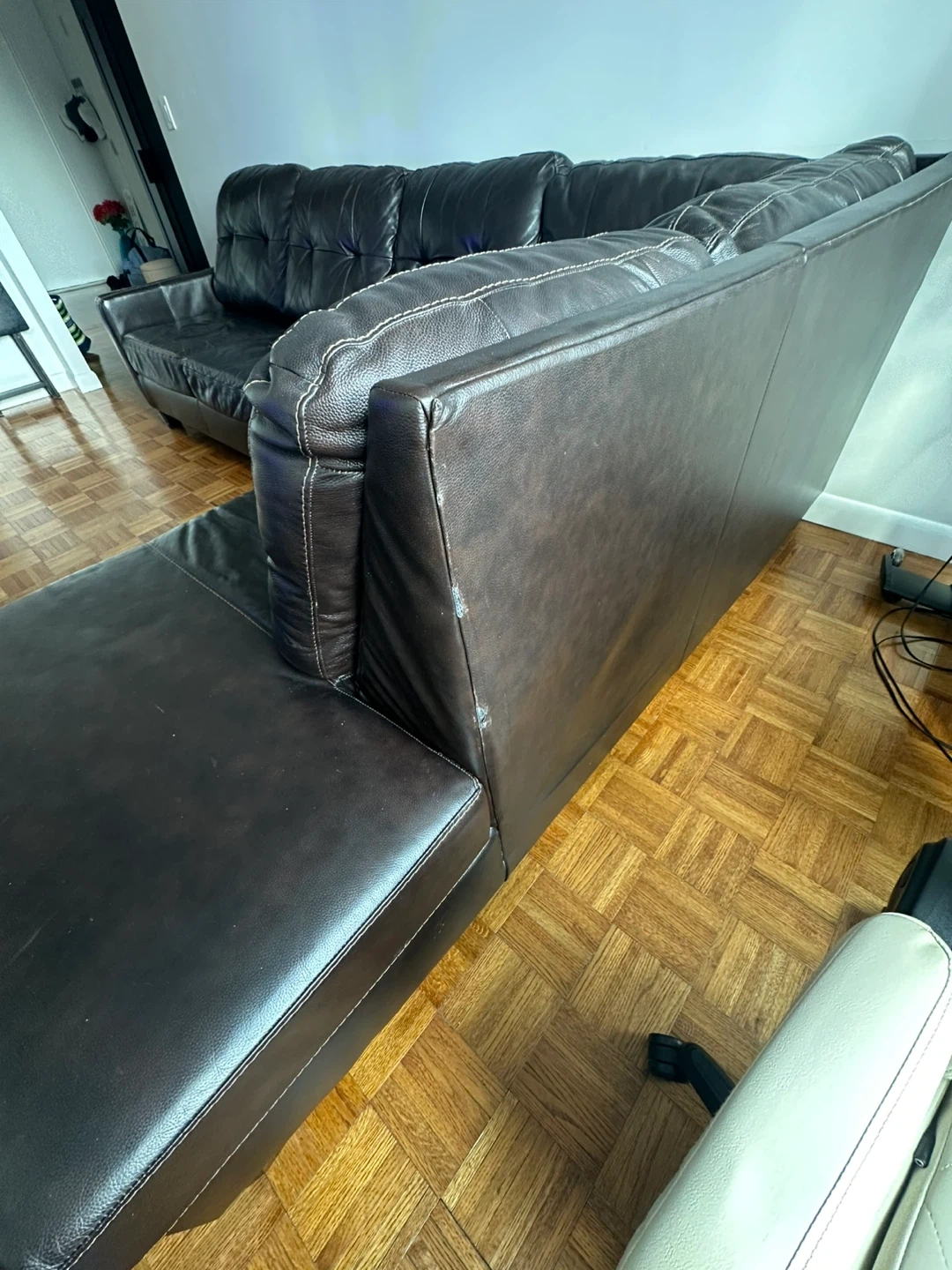 Dark Brown Leather Sectional Sofa with Sleeper Bed