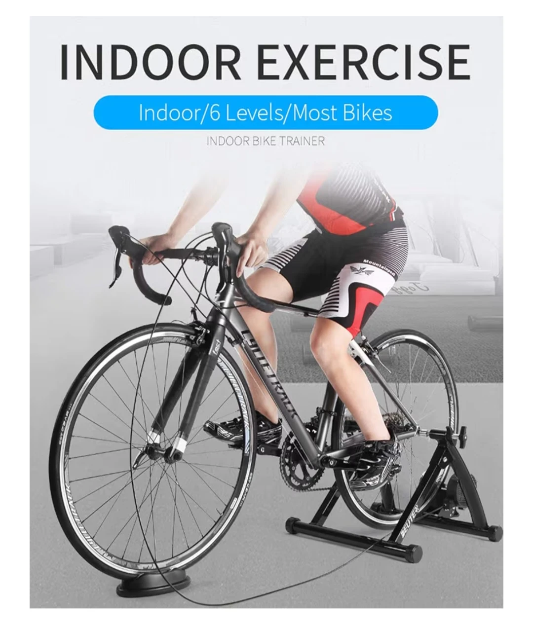 Bike Trainer, Magnetic Bicycle Stationary Stand for Indoor Exercise Riding, 26-29" & 700C Wheels, Quick Release Skewer & Front Wheel Riser Block Included.