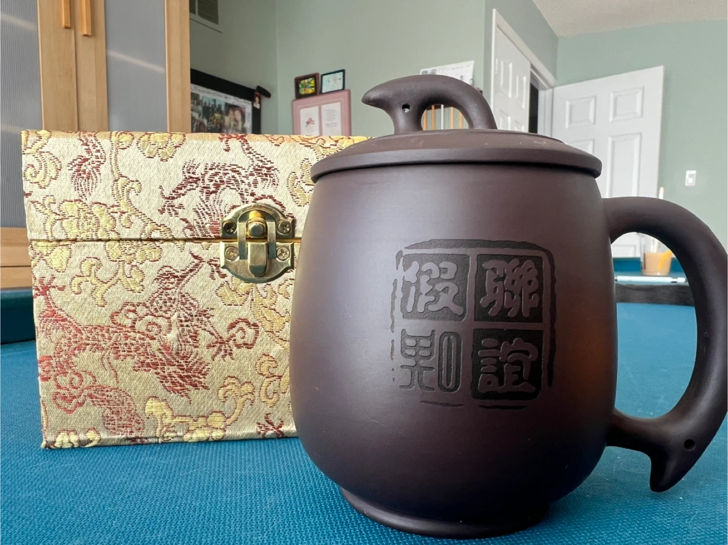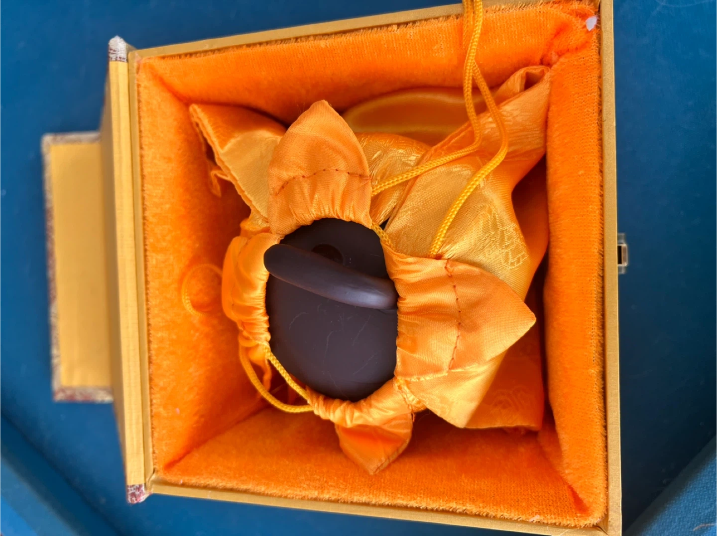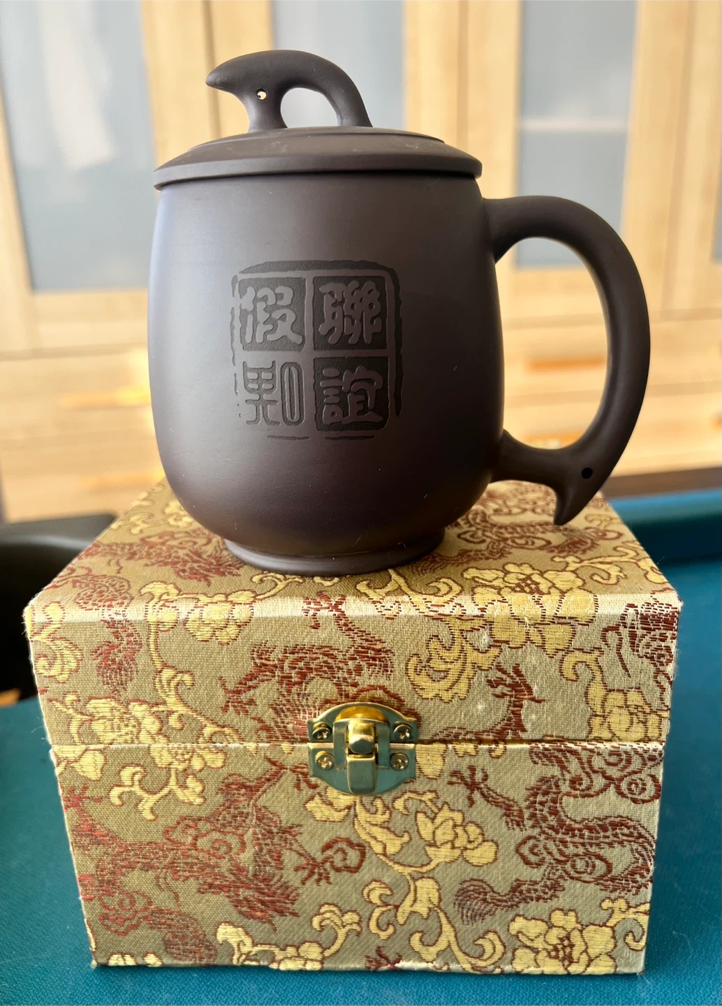 The unglazed clay is know for its ability to enhance the aroma and flavour of the tea. It comes with a decorative patterned box for storage and bag for the tea cup