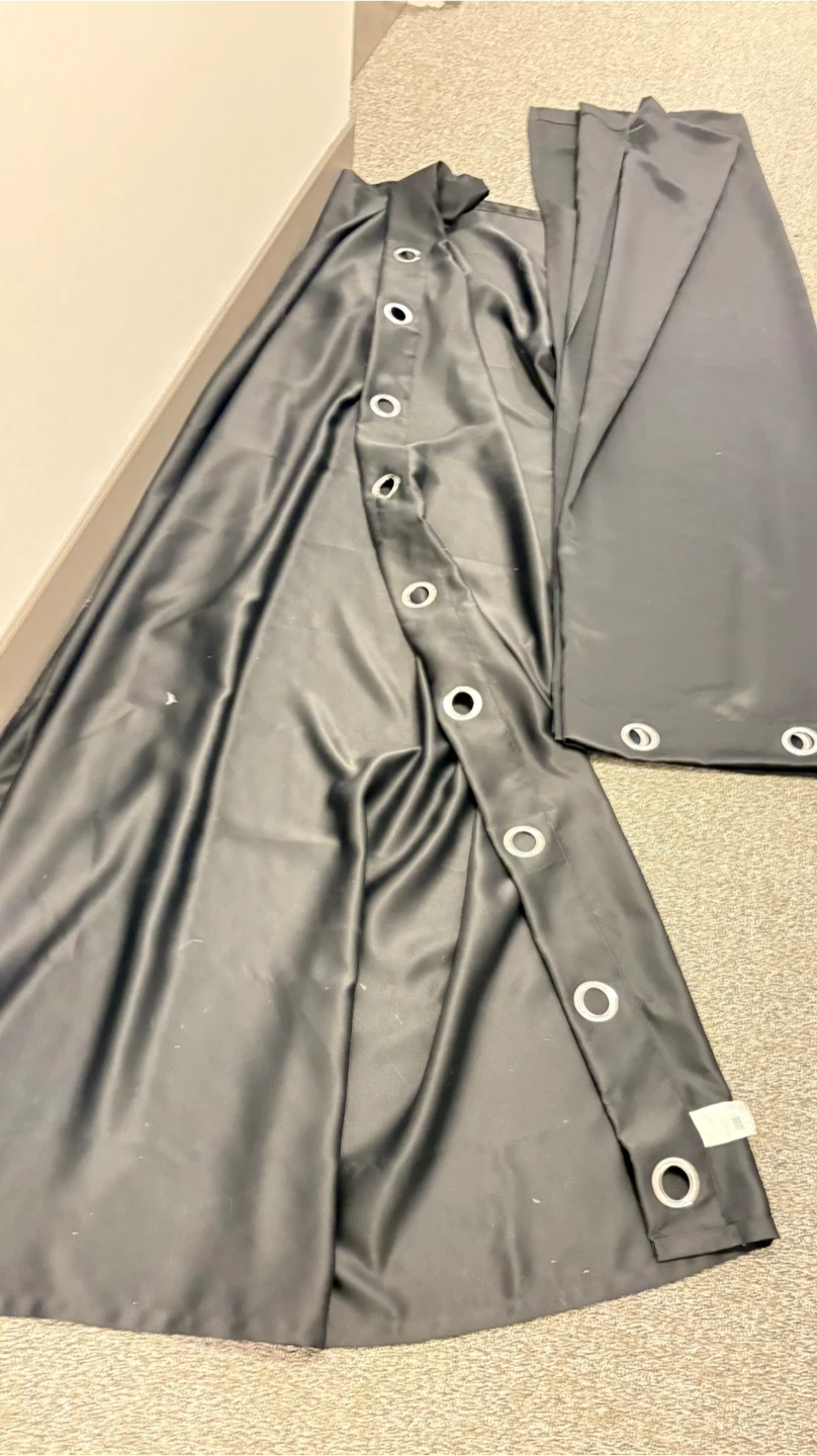 Selling two Deccrelia blackout curtain in black! It's made of 100% polyester, so it's easy to care for. Just machine wash in cold water and tumble dry on low. It's in great condition and ready to block out the light