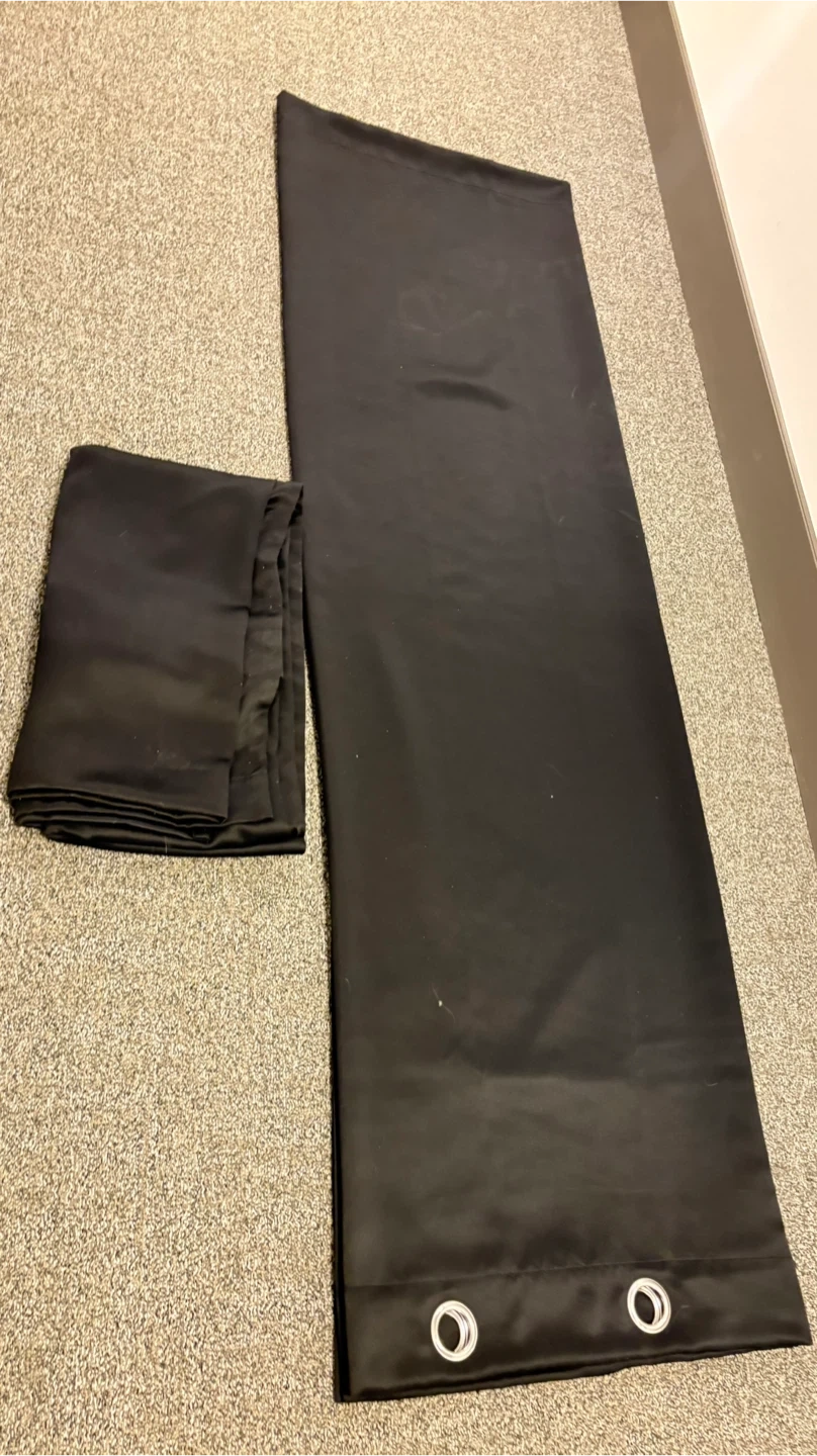 Selling two Deccrelia blackout curtain in black! It's made of 100% polyester, so it's easy to care for. Just machine wash in cold water and tumble dry on low. It's in great condition and ready to block out the light