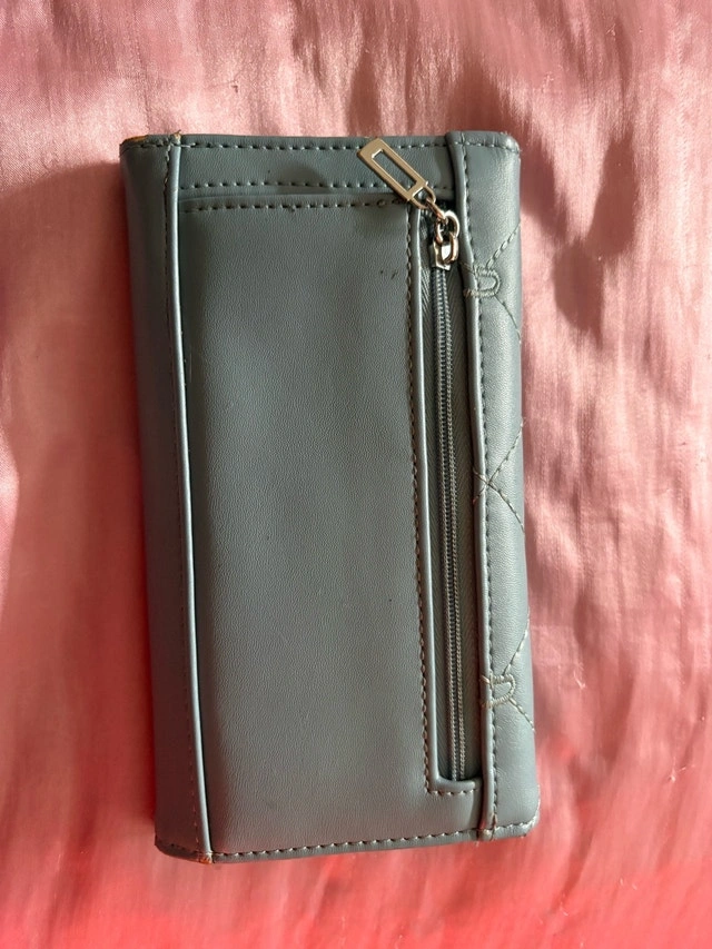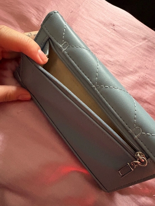 This stylish Guess wallet is in good condition and features a chic, quilted design in a sleek grey colour. It offers plenty of space for your cards, cash, and ID, making it a practical and fashionable accessory. Features: - Multiple card slots - ID window - Bill compartment - Exterior zip pocket