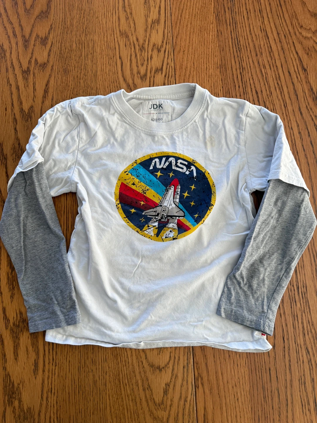 25Selling a JDK long sleeve shirt with a cool NASA design! The size is 130/60. It's in great condition and perfect for any young space enthusiast