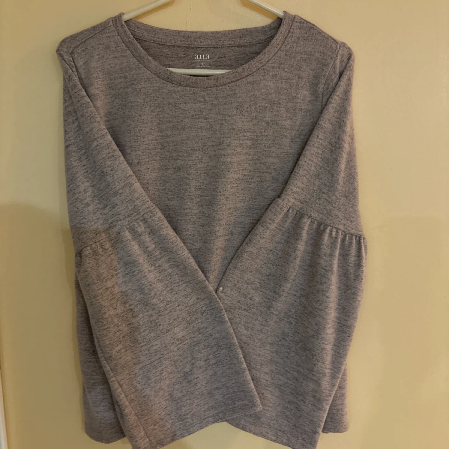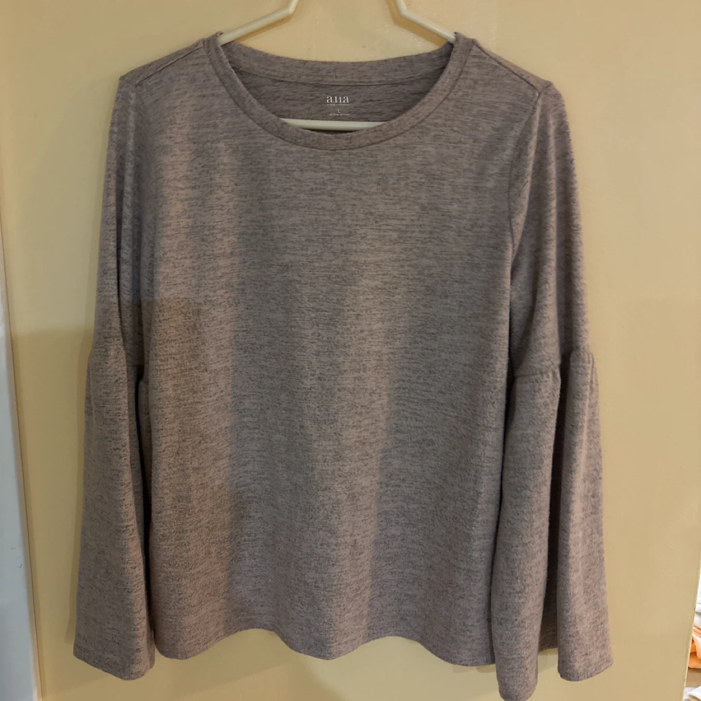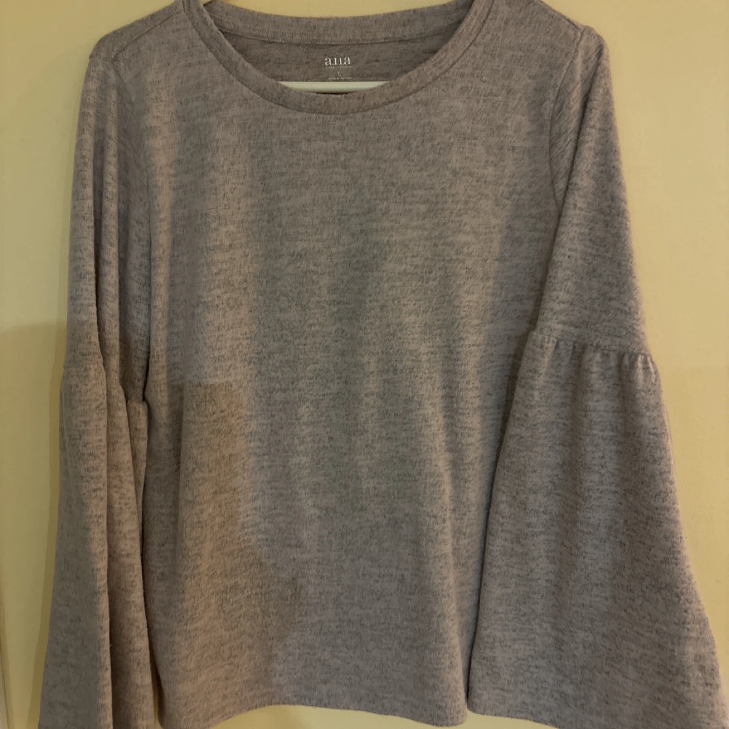 ANA A NEW APPROACH Sweather top. Features bell sleeves. Pinkish Gray color. Size large.