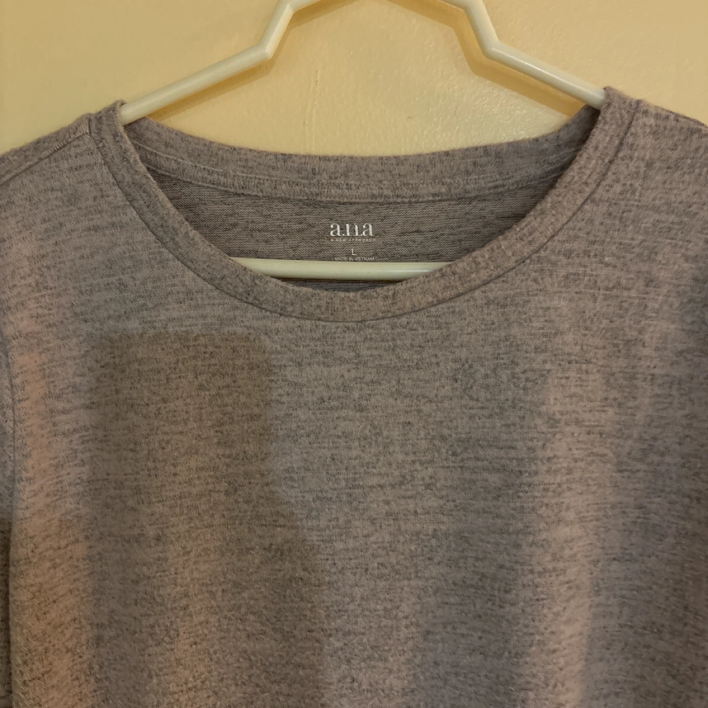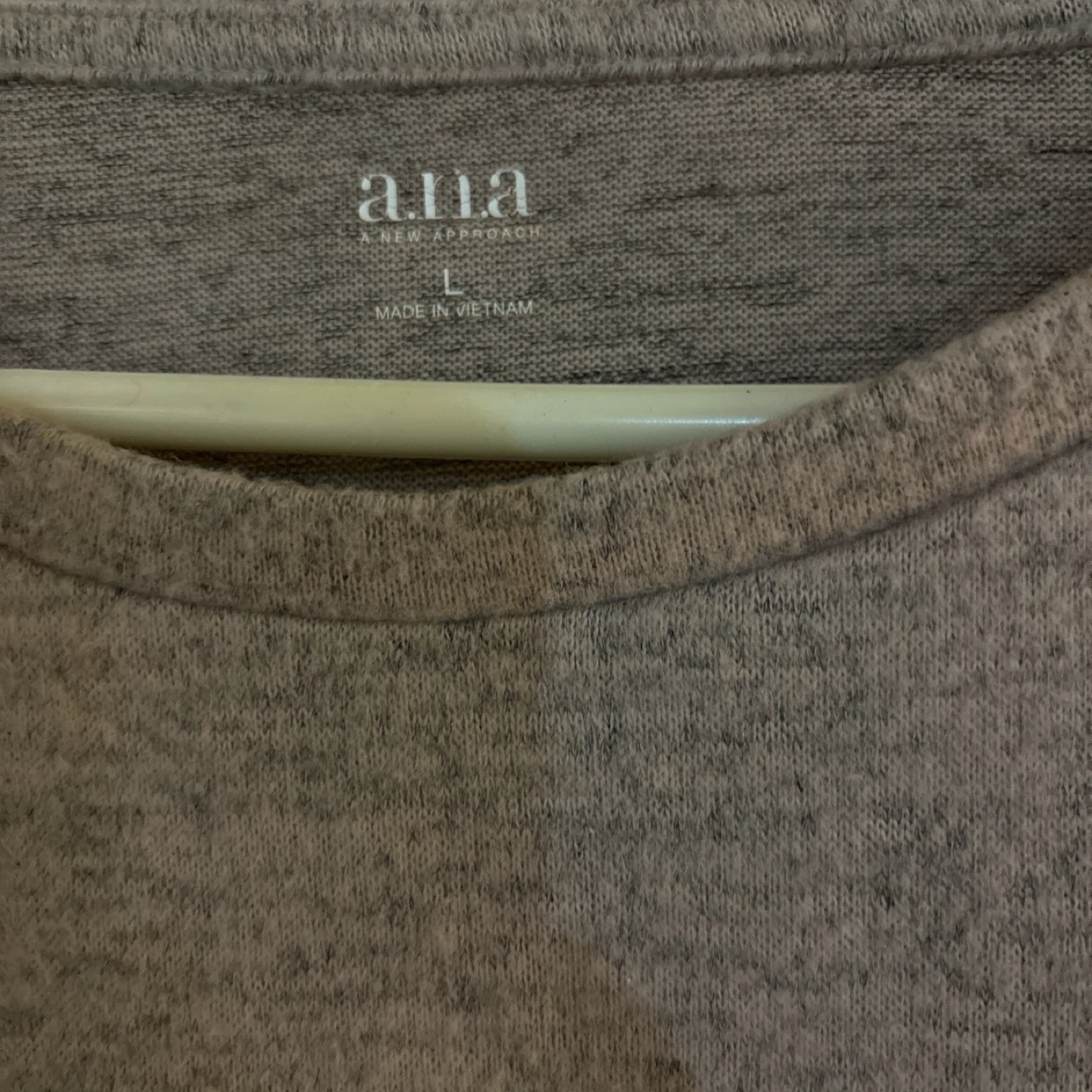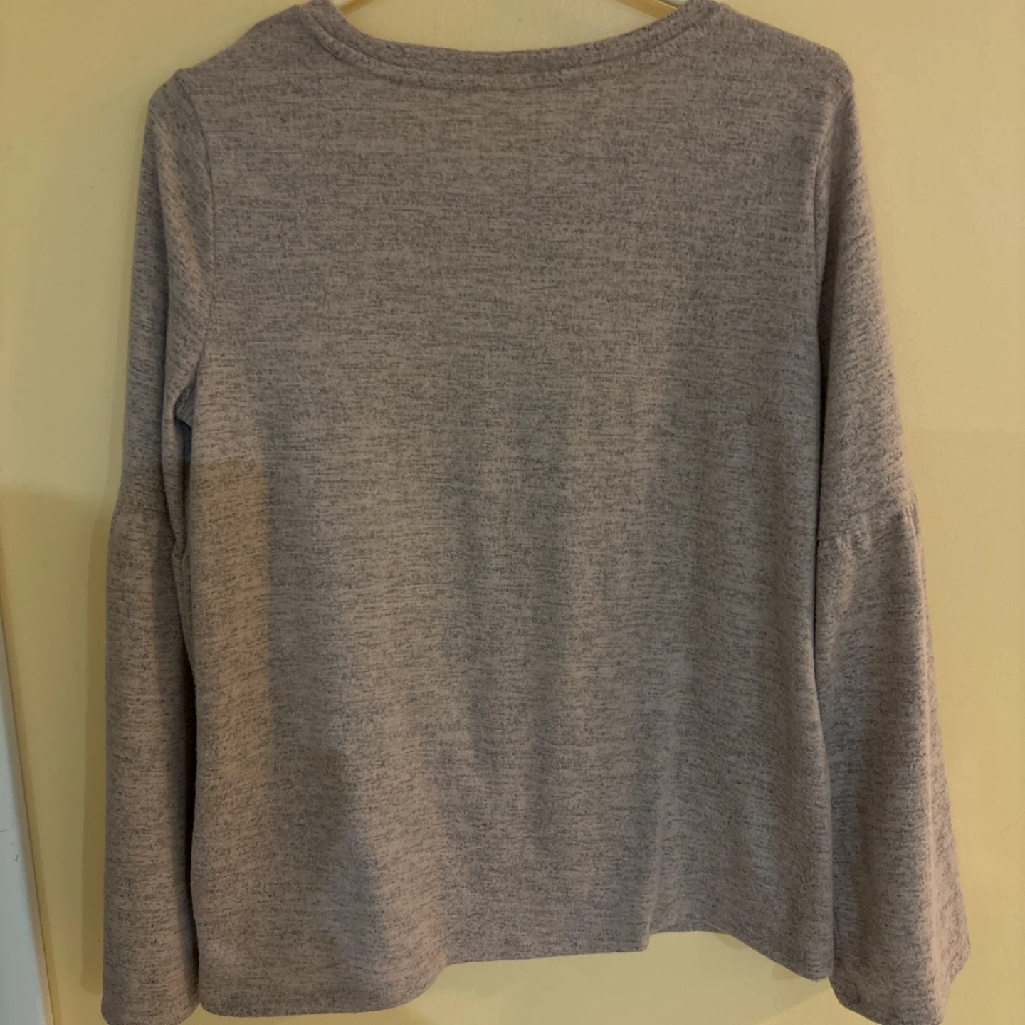 ANA A NEW APPROACH Sweather top. Features bell sleeves. Pinkish Gray color. Size large.