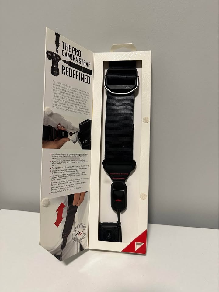 Moving internationally so everything must go! Brand: Peak Design. For photography enthusiasts, this strap will make your hobby so much more secure. Strap on for your next adventure! Cash only, pickup only. Closest Intersection: Dundas St W and Keele.