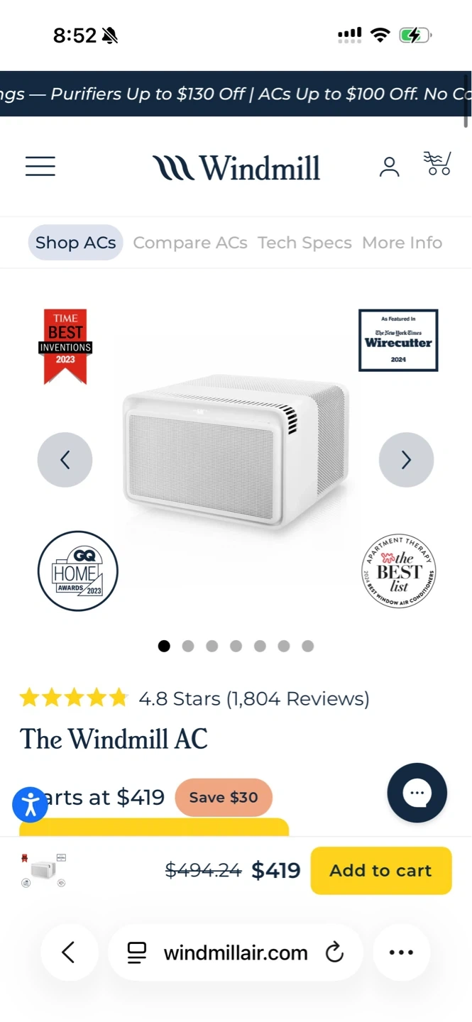 Windmill AC - Medium AC 8300 BTU (up to 350 sq ft) / No box. Used since 2022.