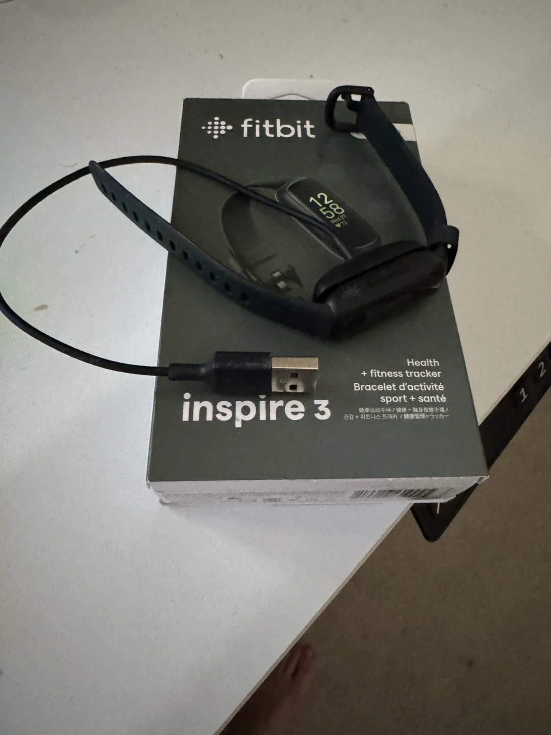 This is a Fitbit Inspire 3 health and fitness tracker. It comes with a charging cable. It's designed to help you monitor your activity and overall well-being. I purchased before Christmas, wore it once and I don’t feel I will use it. Purchased from staples in cochrane for $129.00 - like new