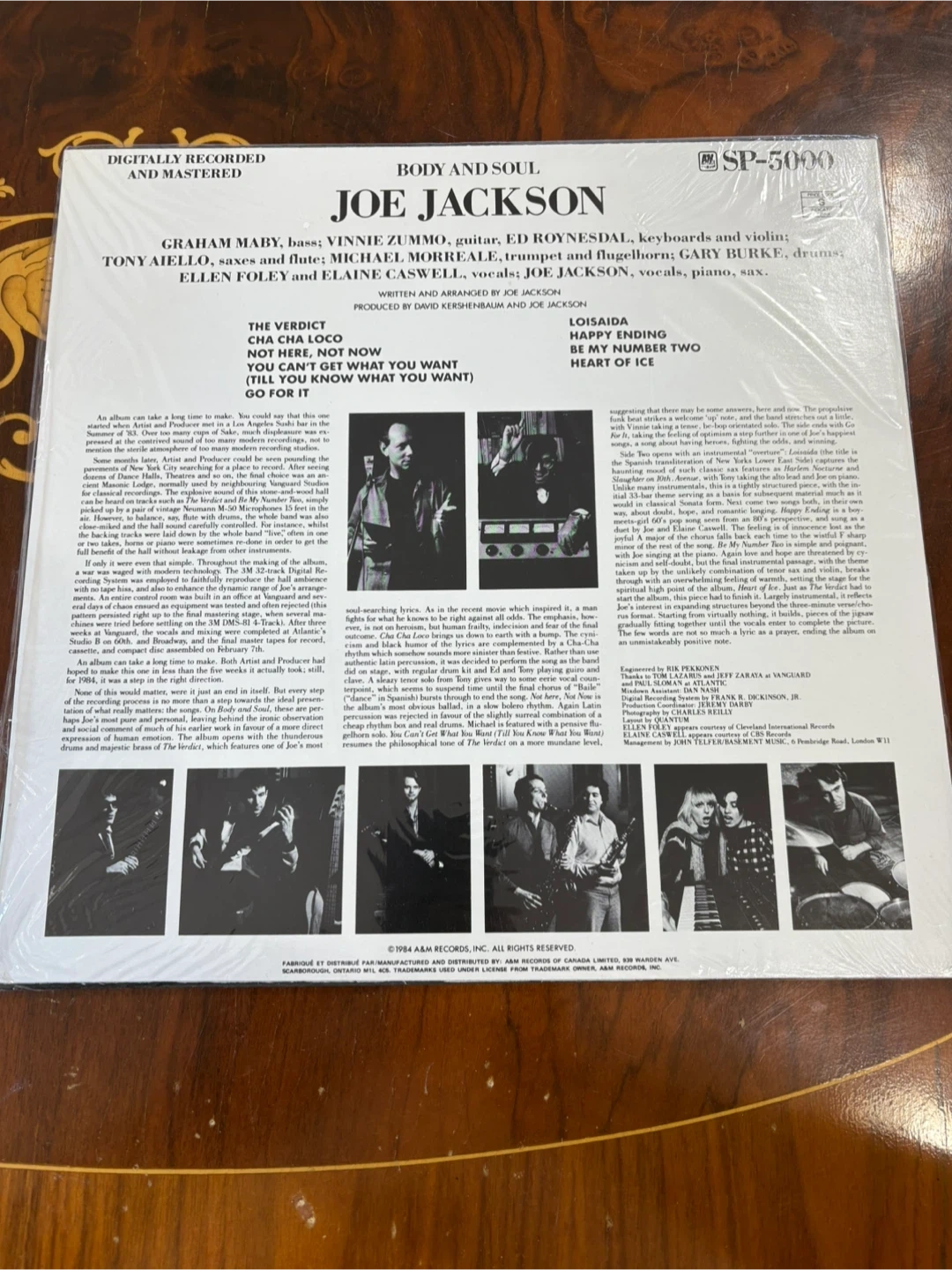 This is Joe Jackson's 1984 album 'Body and Soul'. It features hits like 'You Can't Get What You Want (Til You Get What You Want)' and 'Happy Ending'. This is a sealed copy.