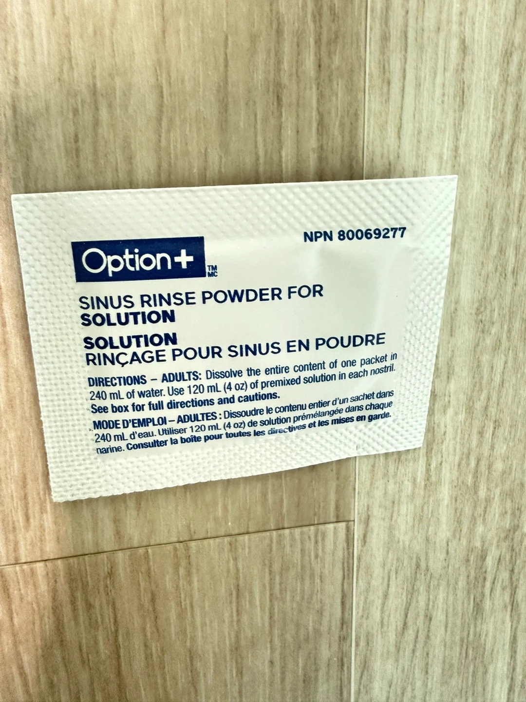 Buy & SellOption+ Nasal Rinse KitOption+ Nasal Rinse Kit$5Kit Includes: 1x 240mL bottle 44 packets of sinus rinse powder for solutionConditionLike newBrandOption+WHERE TO MEETFinch TTC Subway StationView MapSELLERElsieFinch26727 reviews0 chats·2 favorites·16 viewsSEND CHAT TO SELLERHi Elsie! I’m interested in your listing.Hi Elsie! I’m interested in your listing.Get the Karrot app to chatSign In to chat
