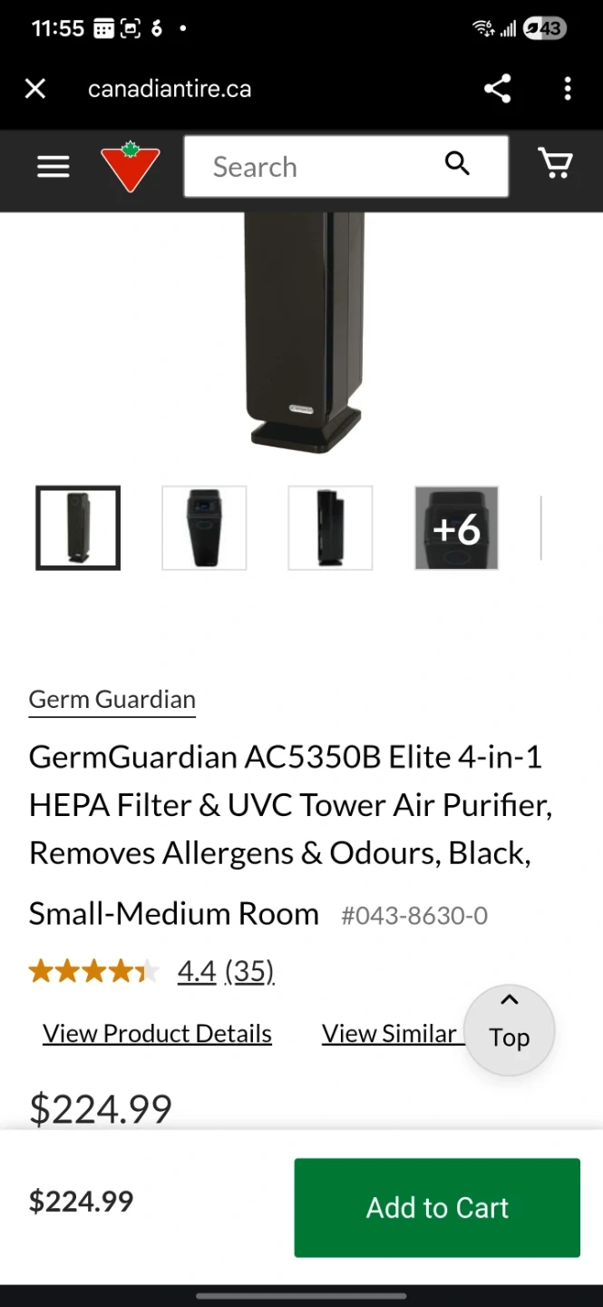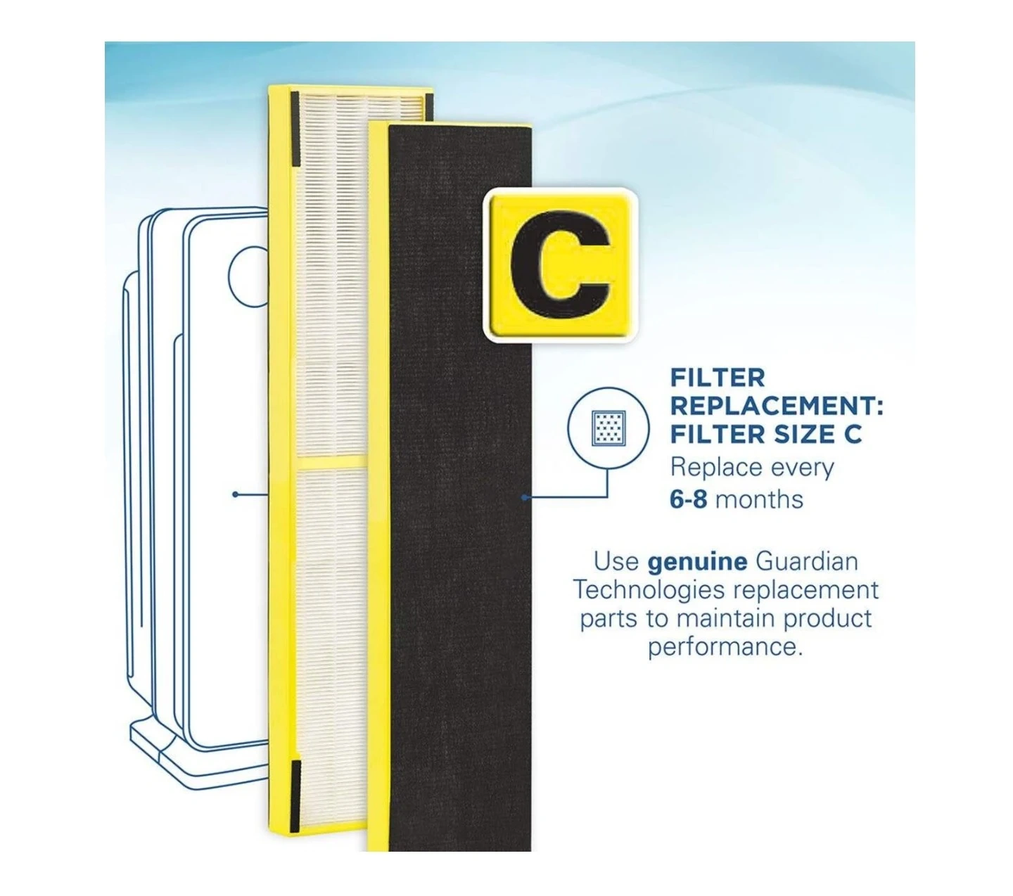 The GermGuardian AC5350B Elite 4-in-1 HEPA Filter UV-C Tower Air Purifier enhances air quality by eliminating allergens, odours, and germs, making it perfect for small to medium-sized rooms. Equipped with a True HEPA filter, it captures 99.97% of airborne particles, including dust, pollen, and pet dander.