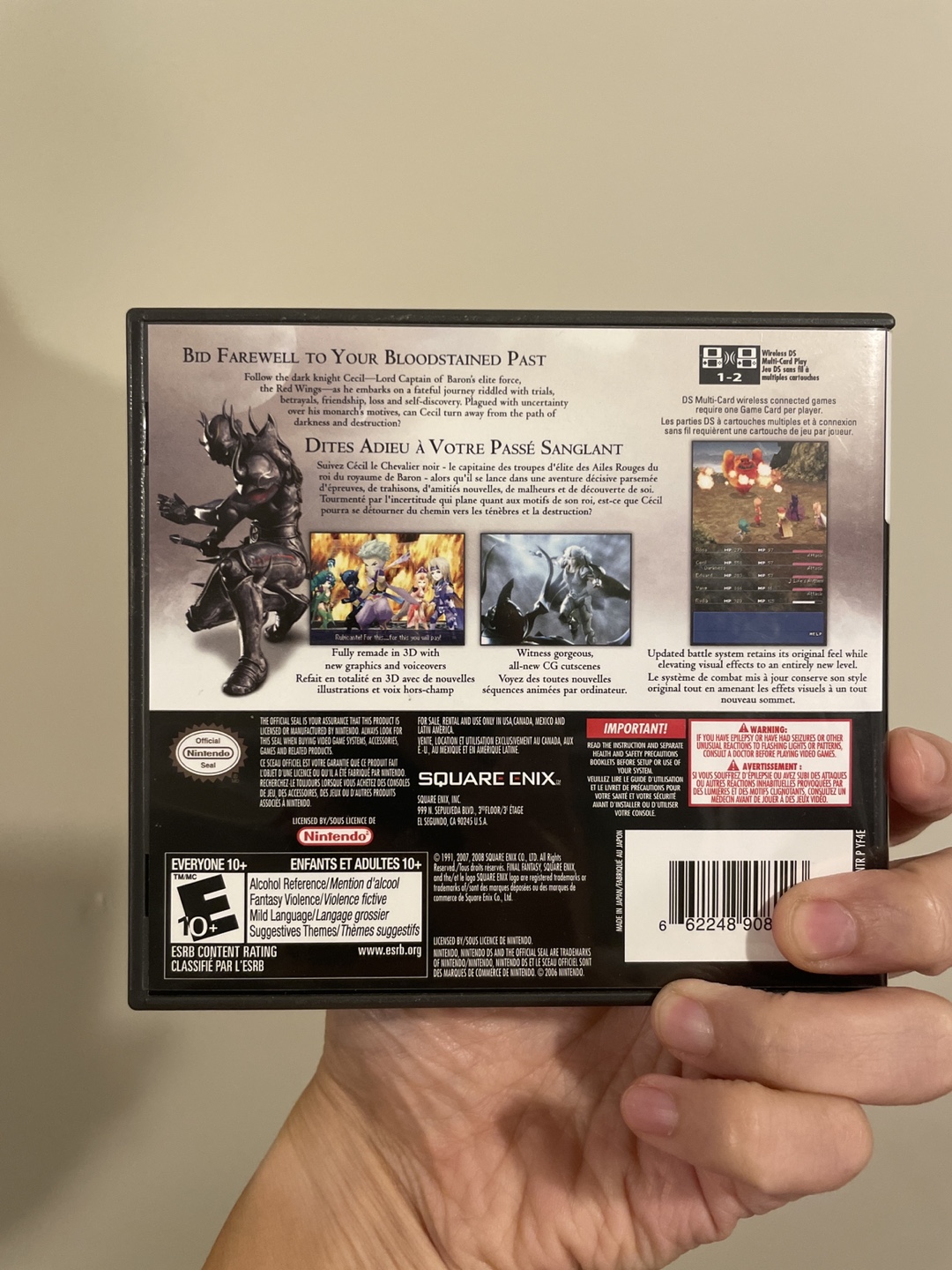 Selling Final Fantasy IV for the Nintendo DS. It's in great condition and includes the game cartridge and instruction manual. A fun RPG game for everyone!